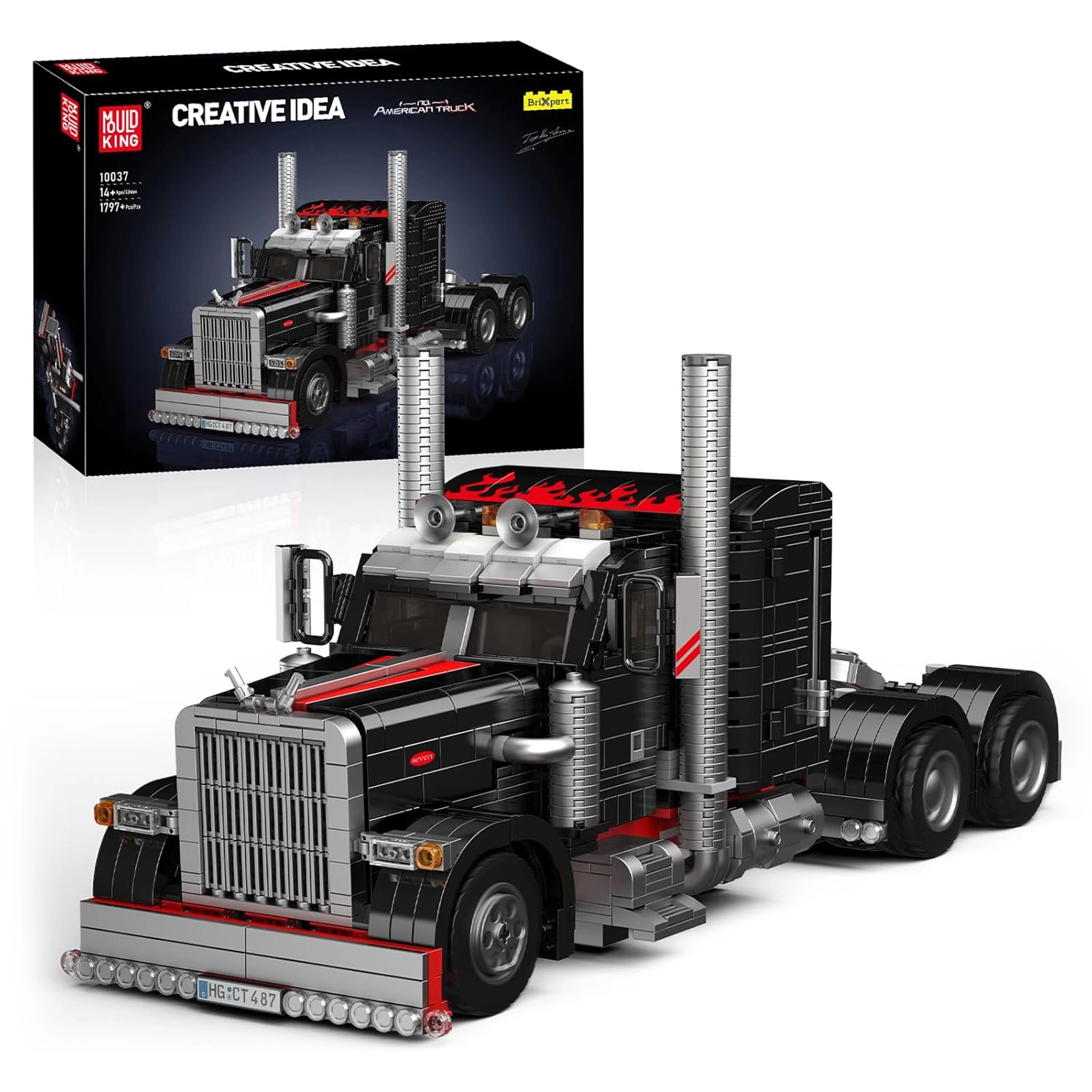 Krótki opis: Zbuduj legendę amerykańskich dróg z zestawem Mould King 10037! Ten kultowy czarny truck z realistycznymi detalami i masywną sylwetką to prawdziwa gratka dla miłośników ciężarówek i konstrukcji.
