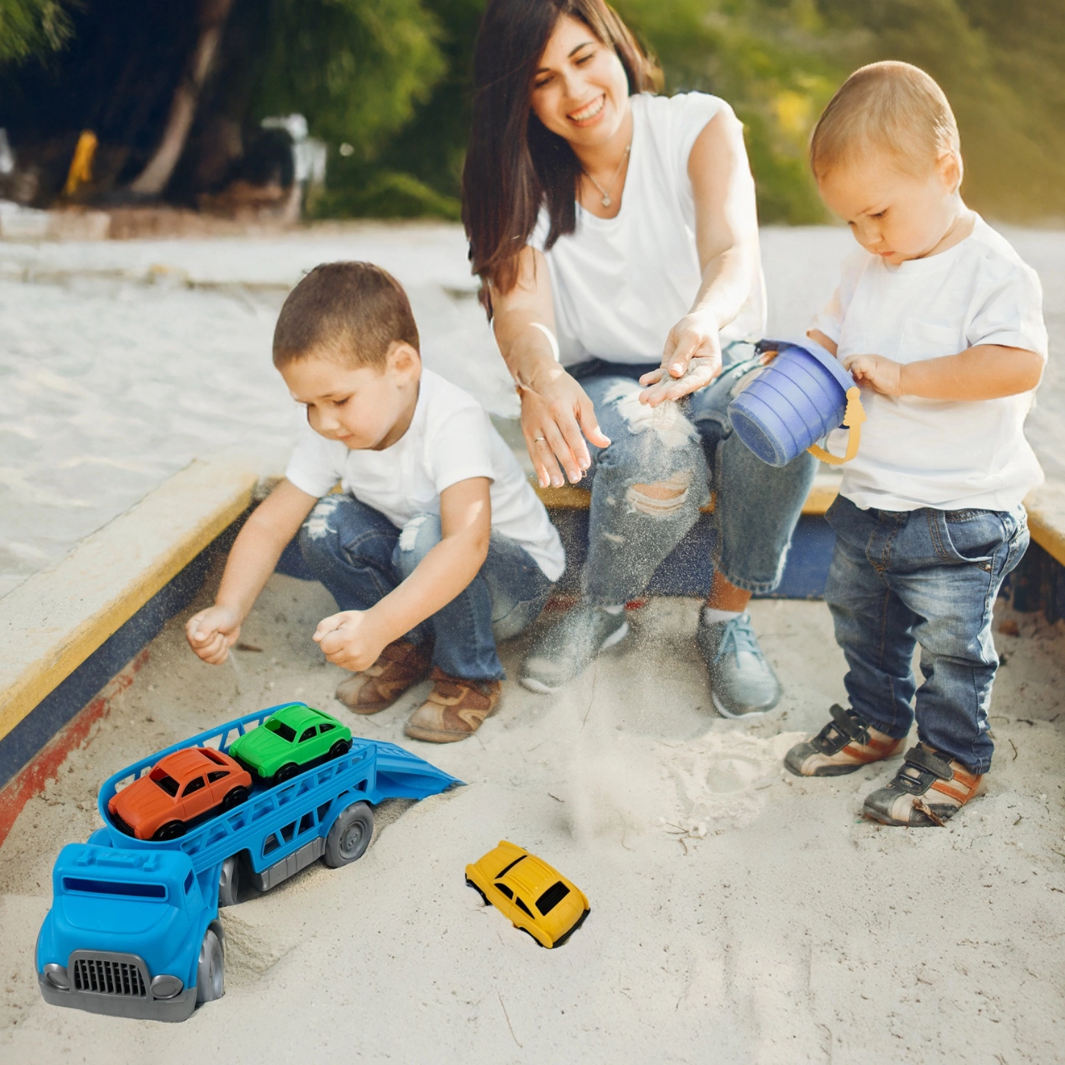 Ciężarówka Laweta z Autkami do Piasku Transporter do Piaskownicy na Plażę