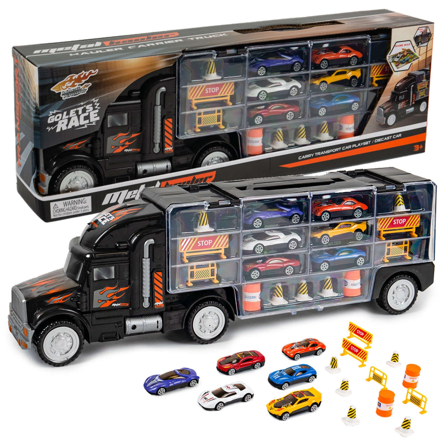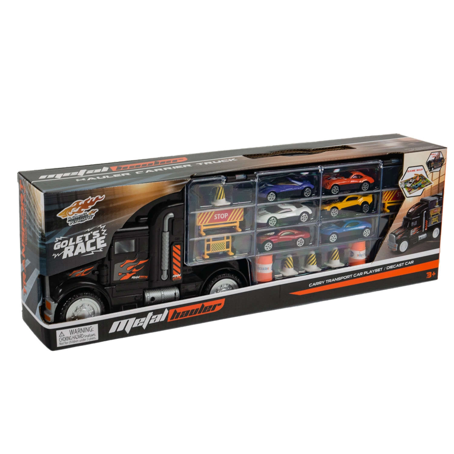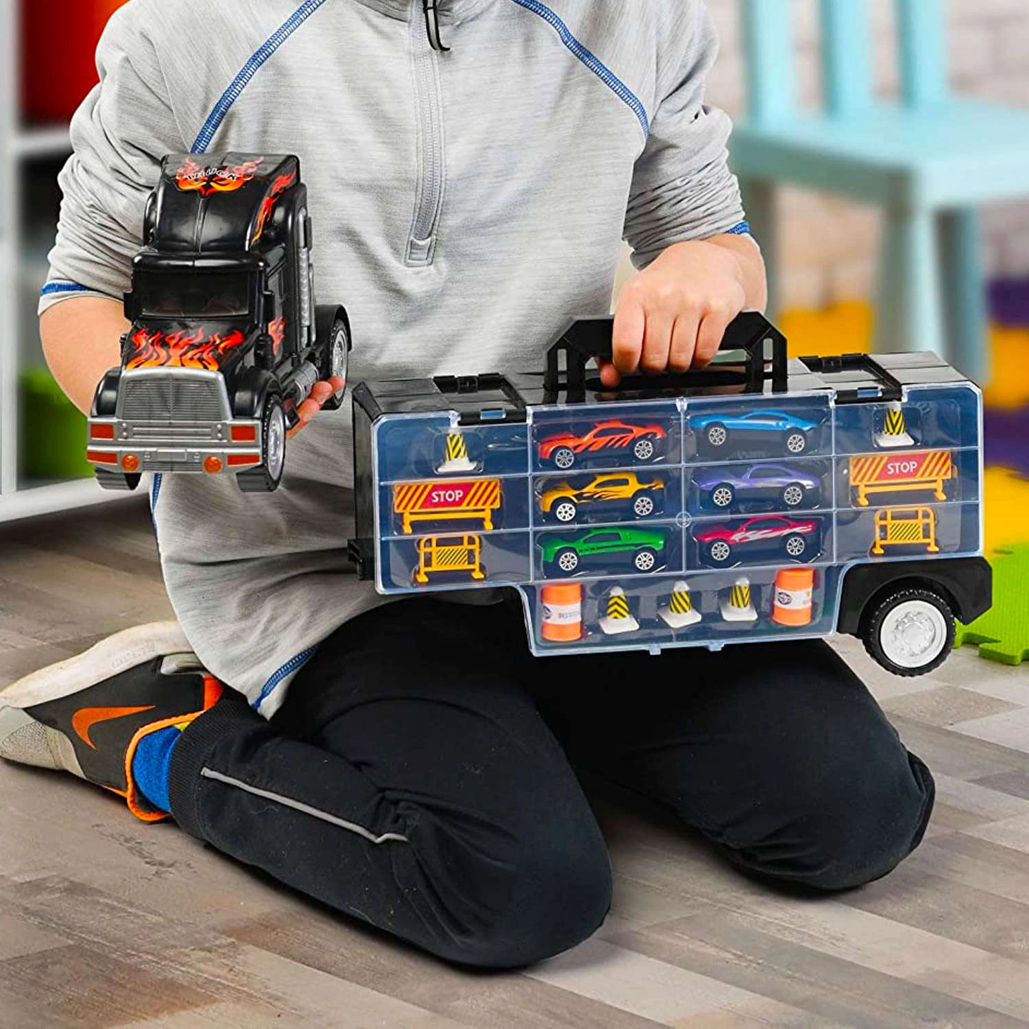 Zestaw składa się z ciężarówki, 6 resoraków i dodatkowych akcesoriów oraz doczepianej lawety w kształcie walizki, którą wygodnie można transportować wraz z zawartością. Dzięki temu zestawowi masz pewność, że Twoja pociecha nie zagubi ani jednego pojazdu ze swojej kolekcji autek. Dzięki wygodnemu uchwytowi przenoszenie całego zestawu jest bezproblemowe.