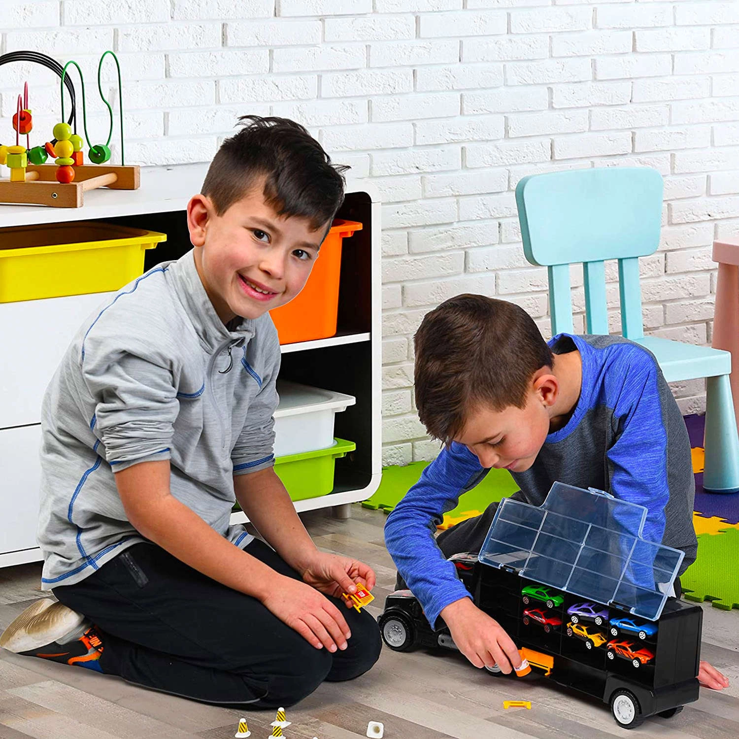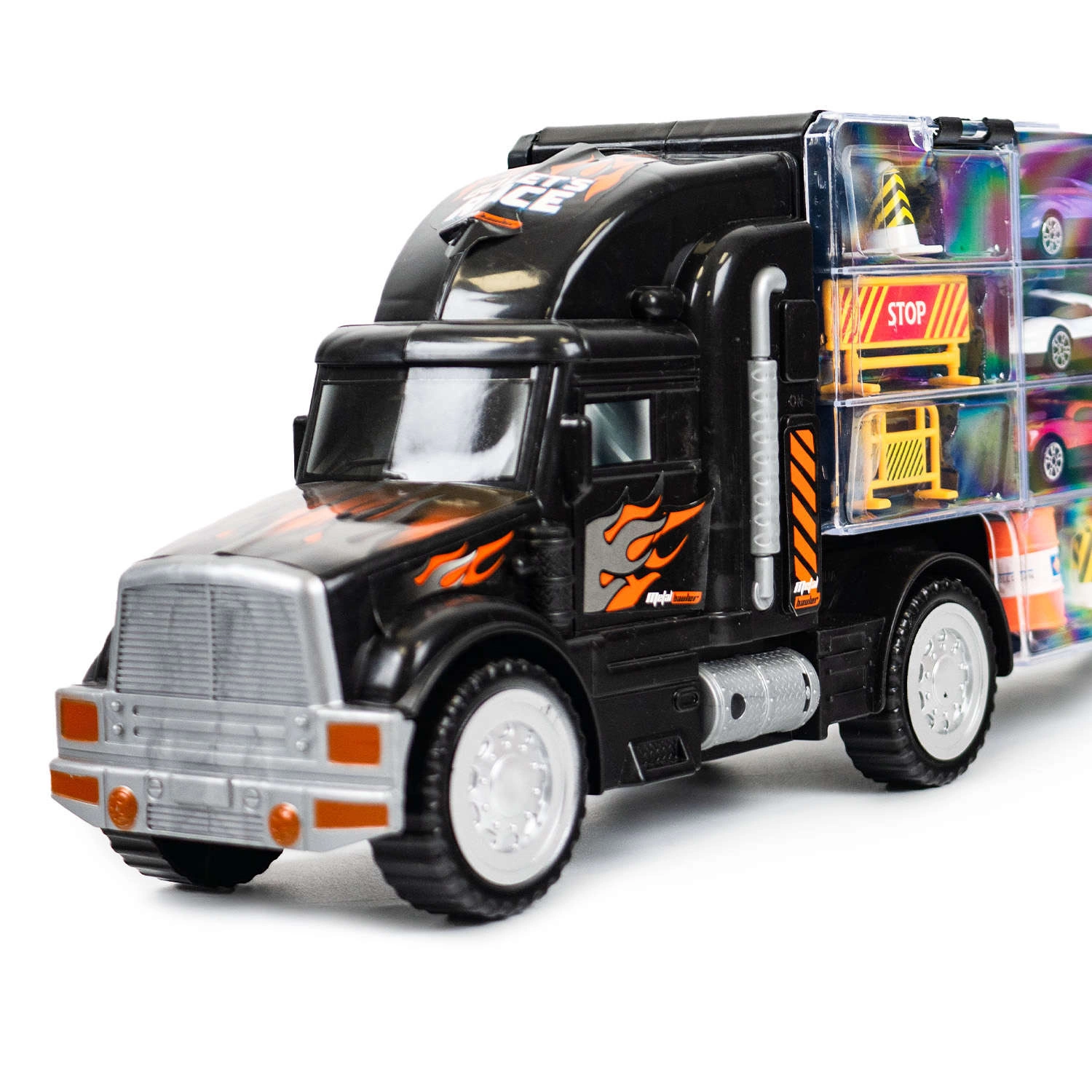 • Ciężarówka z 6 resorakami oraz akcesoriami. Do zestawu dołączona jest również plansza do gry. Autka stworzone są z bezpiecznego dla dzieci tworzywa, który zapewnia długi czas zabawy.