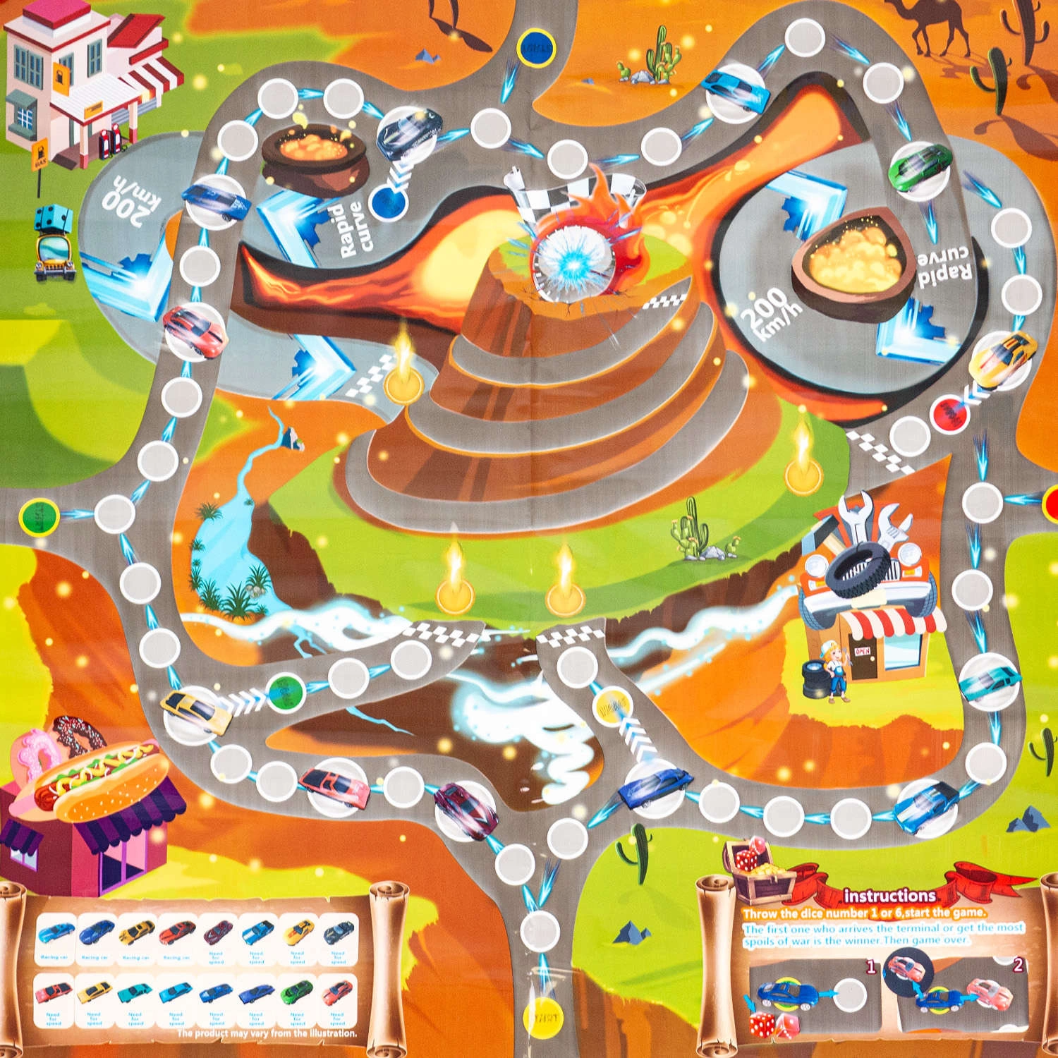 Dzięki dołączonej do zestawu maty nasza pociecha może wraz ze znajomymi i rodziną zagrać w planszową grę. Zasada jest prosta, kto pierwszy przetnie linie mety wygrywa!