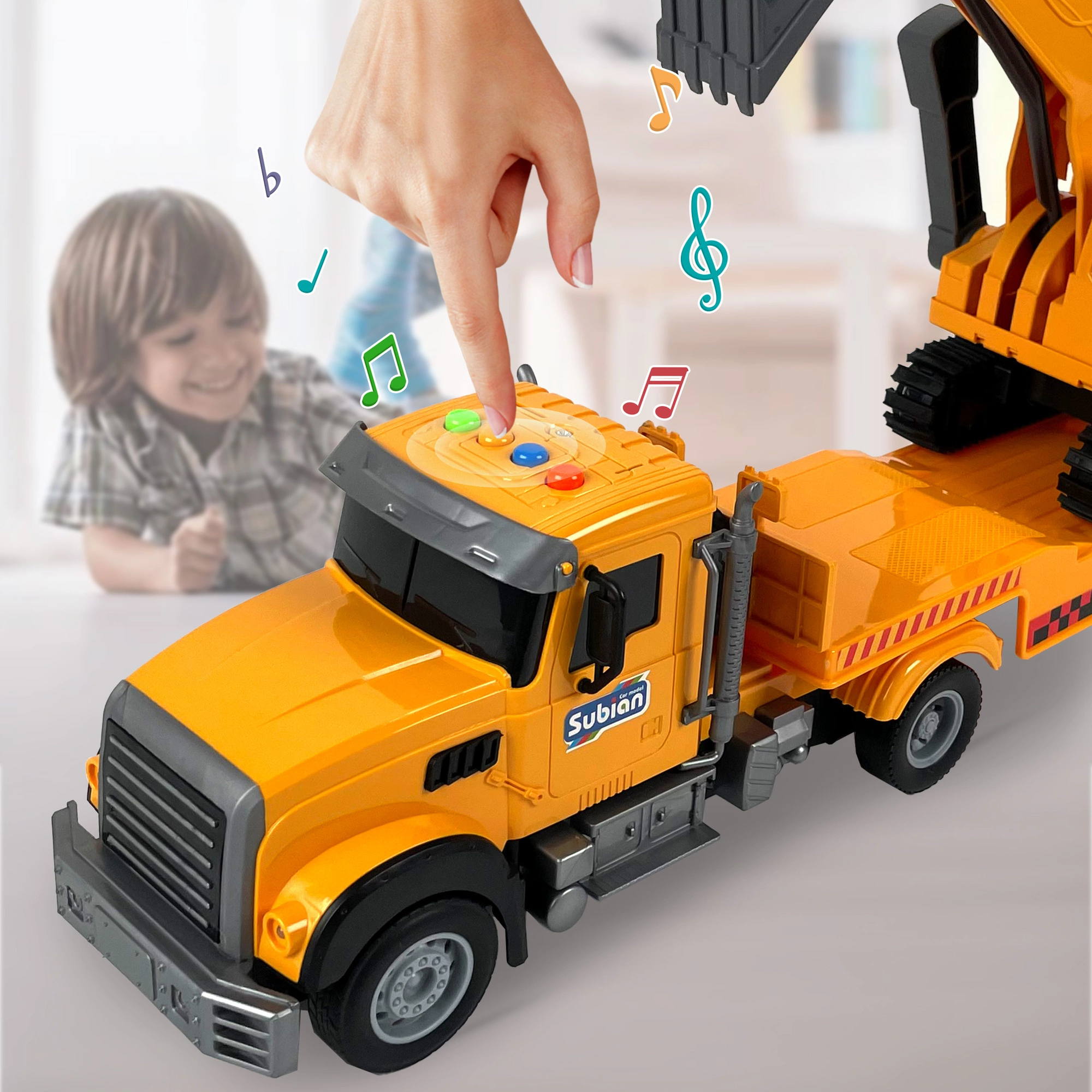 Zabawka służy do symulacji transportu maszyn budowlanych, co pozwala dzieciom wcielać się w rolę kierowców ciężarówek lub budowlańców. Dodatkowe efekty dźwiękowe i funkcje sprawiają, że zabawa staje się bardziej realistyczna.