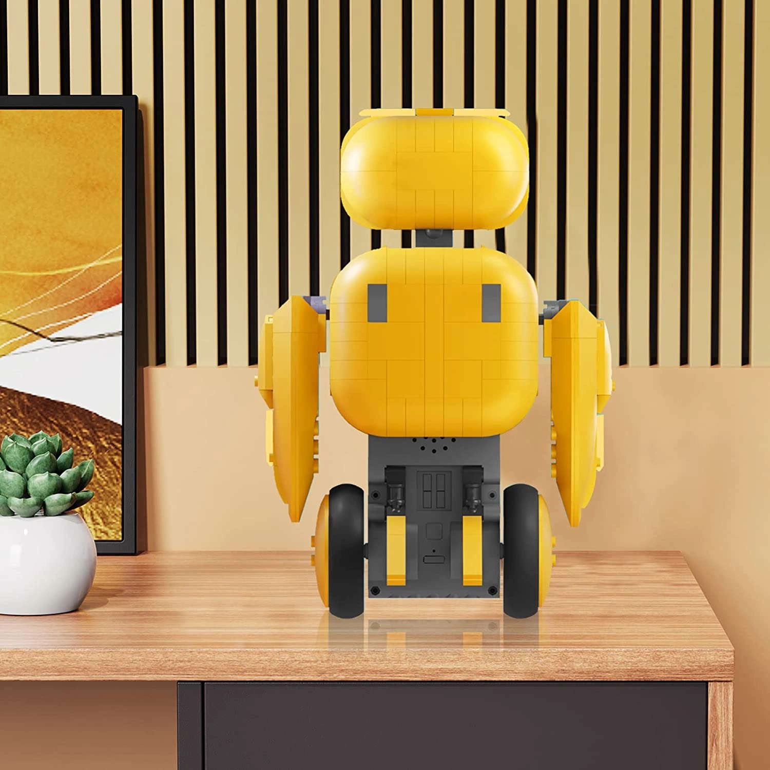 Model został zaprojektowany w kooperacji z najnowszej technologii modułem do zdalnego sterowania. Pełni funkcje sterownicze oraz stabilizuje gotowego robota złożonego z klocków.