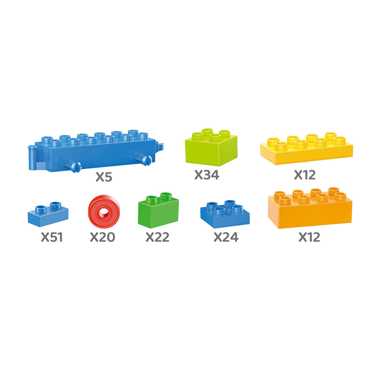 180 starannie zaprojektowanych klocków konstrukcyjnych, które dają możliwość zbudowania pociągu z wagonami, helikoptera, zwierząt, drzewa i wielu innych fantastycznych konstrukcji. Dzięki różnorodności elementów, możliwości są prawie nieskończone!