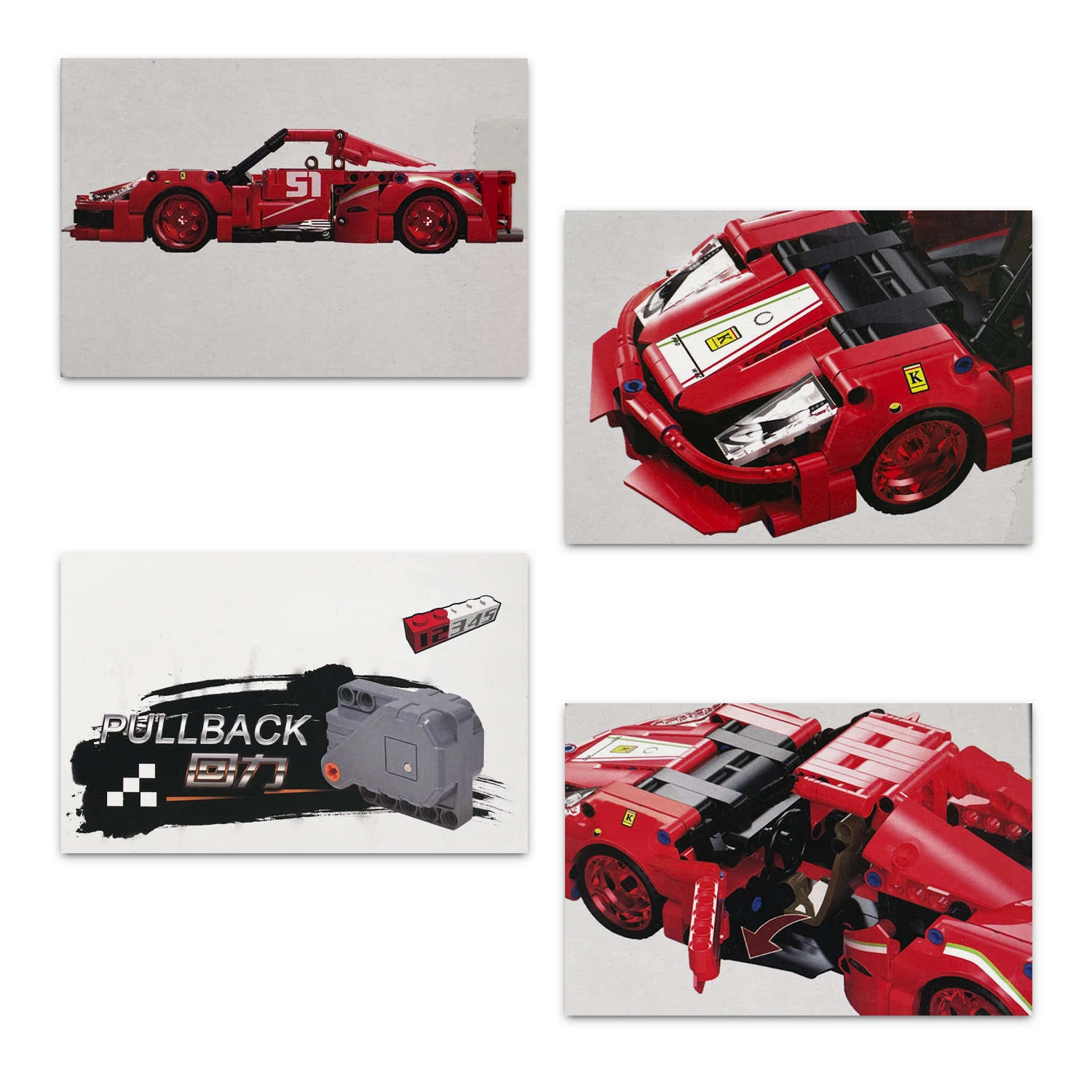- Model sportowego auta wzorowany na legendarnym Ferrari Enzo. Zestaw składa się z ok. 527 klocków kompatybilnych z LEGO.