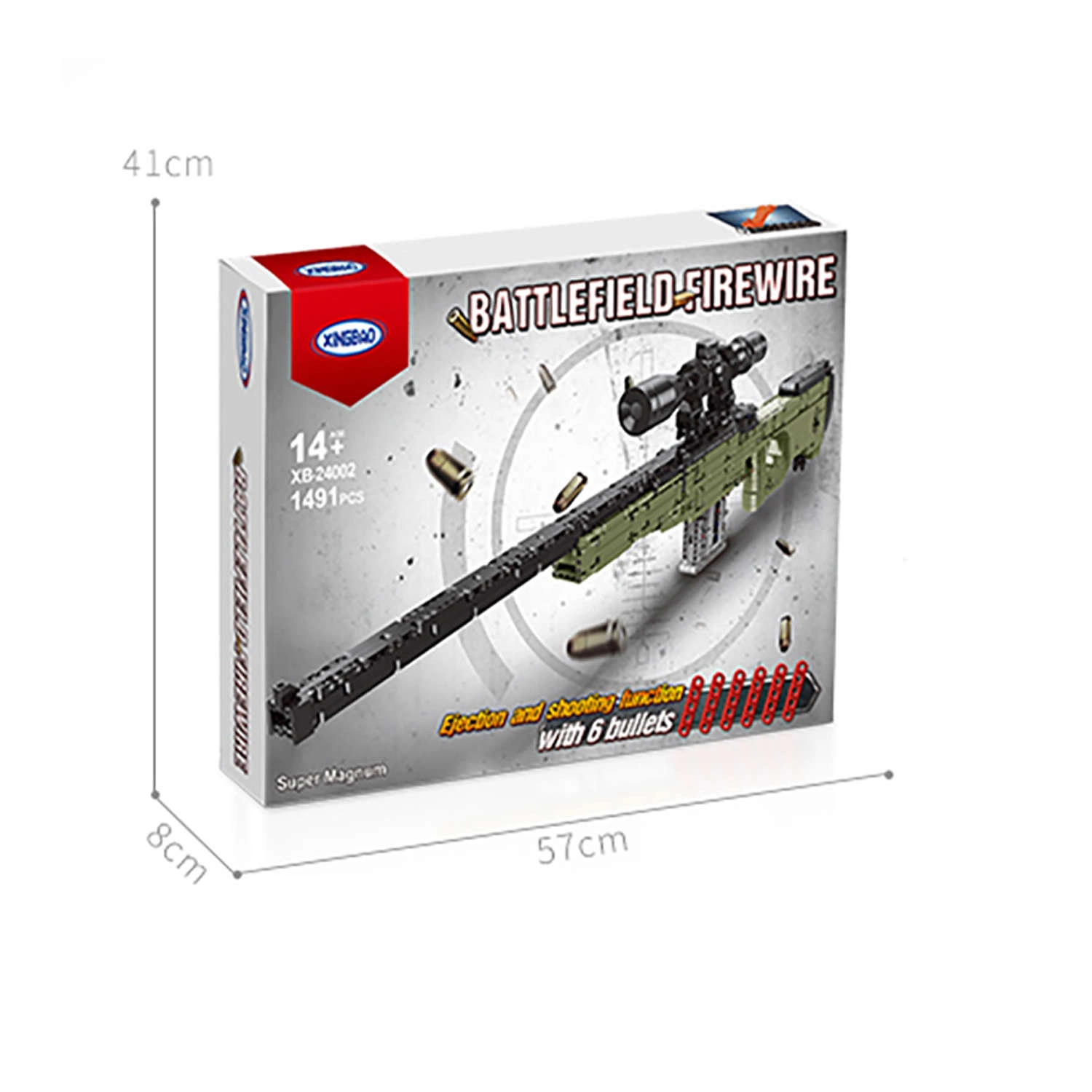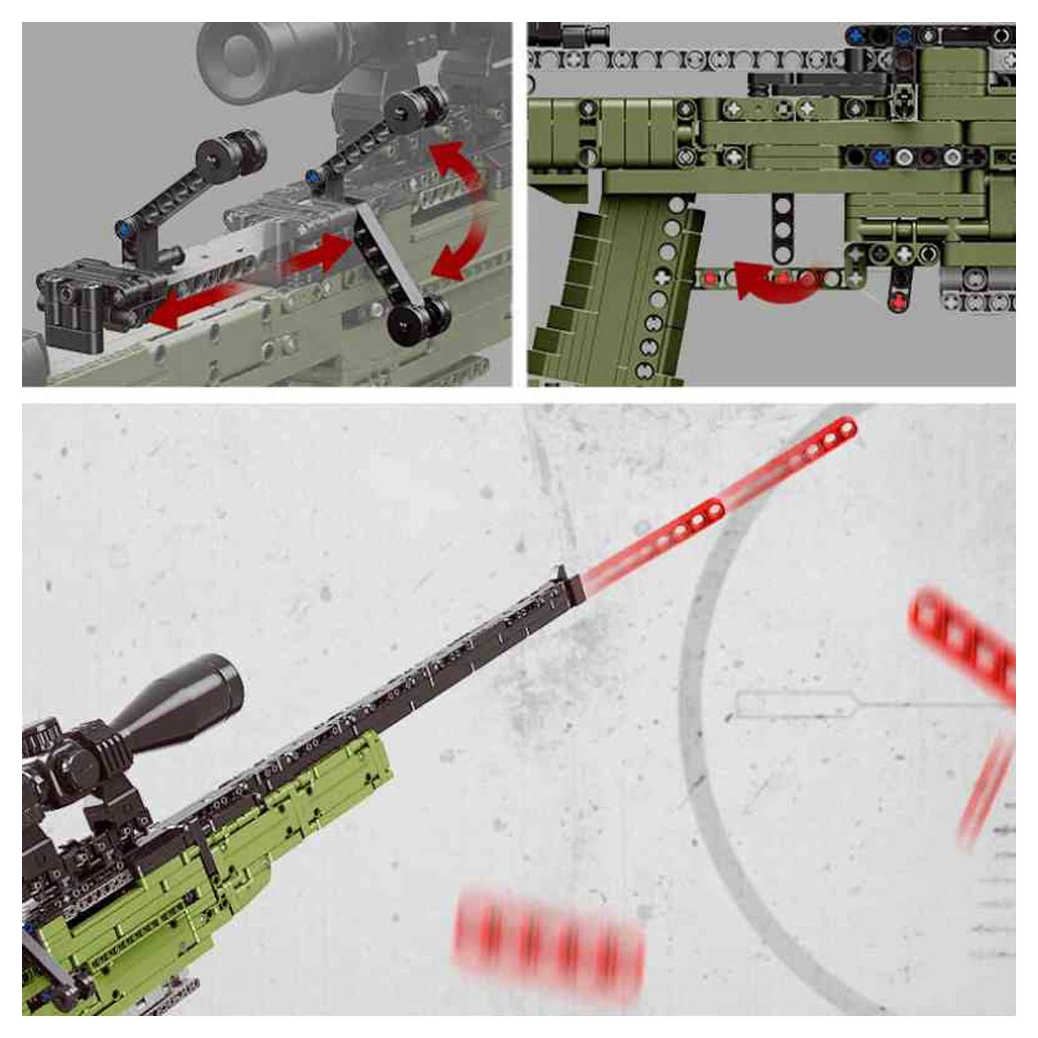 Unikatowy zestaw - Karabin Snajperski AWM XB24002 z klocków kompatybilnych z LEGO Technic. Kolekcjonerski model karabinu snajperskiego o numerze katalogowym: XB-24002.