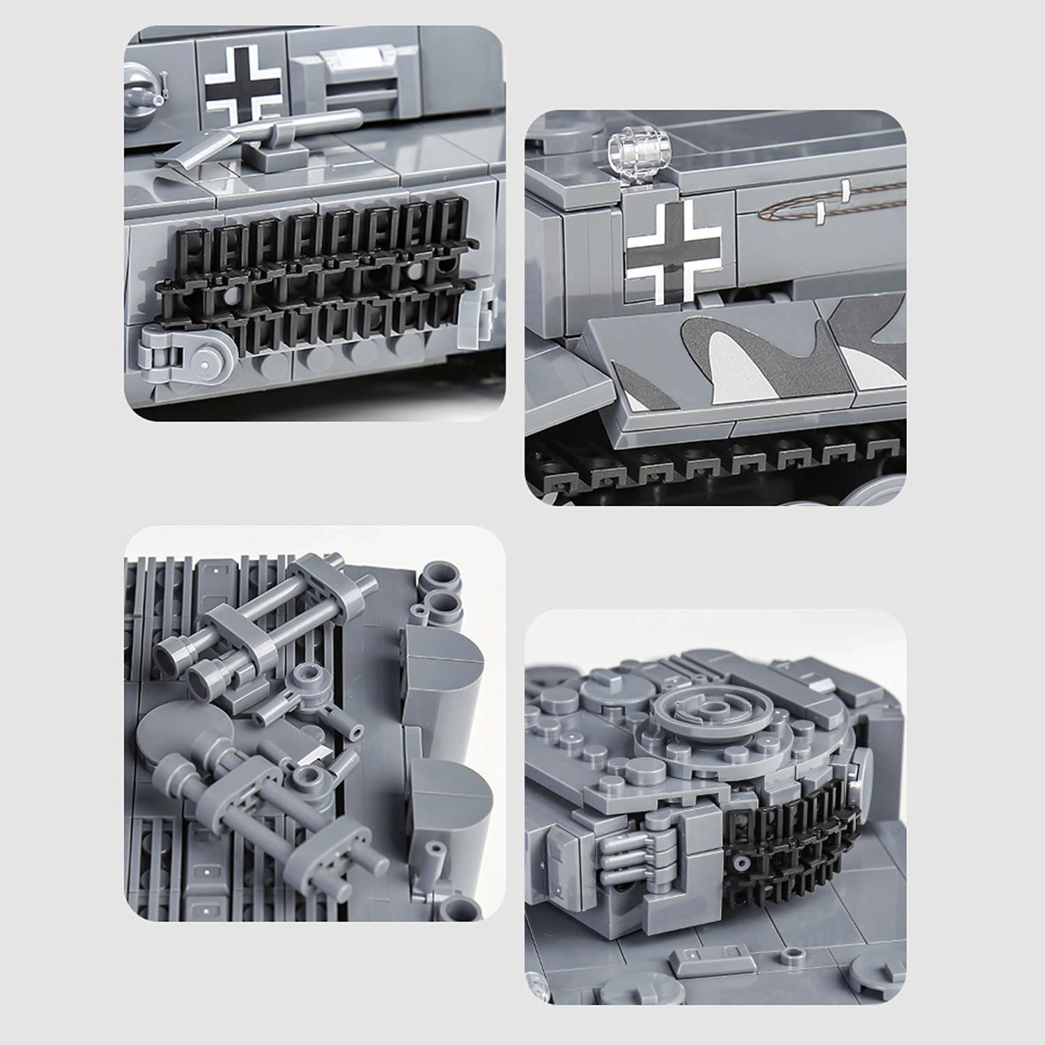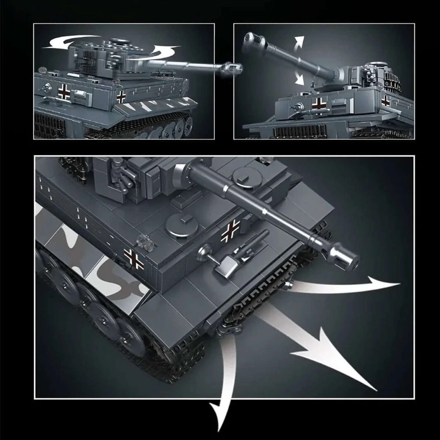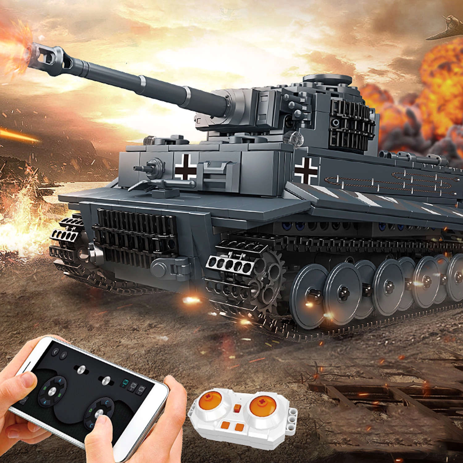 Zdalnie sterowany czołg Tiger marki Mould King to idealny wybór dla dzieci i dorosłych zainteresowanych światem militarnym. Czołg Tiger zabawka może być kontrolowany przy pomocy specjalnej aplikacji lub kontrolera.
