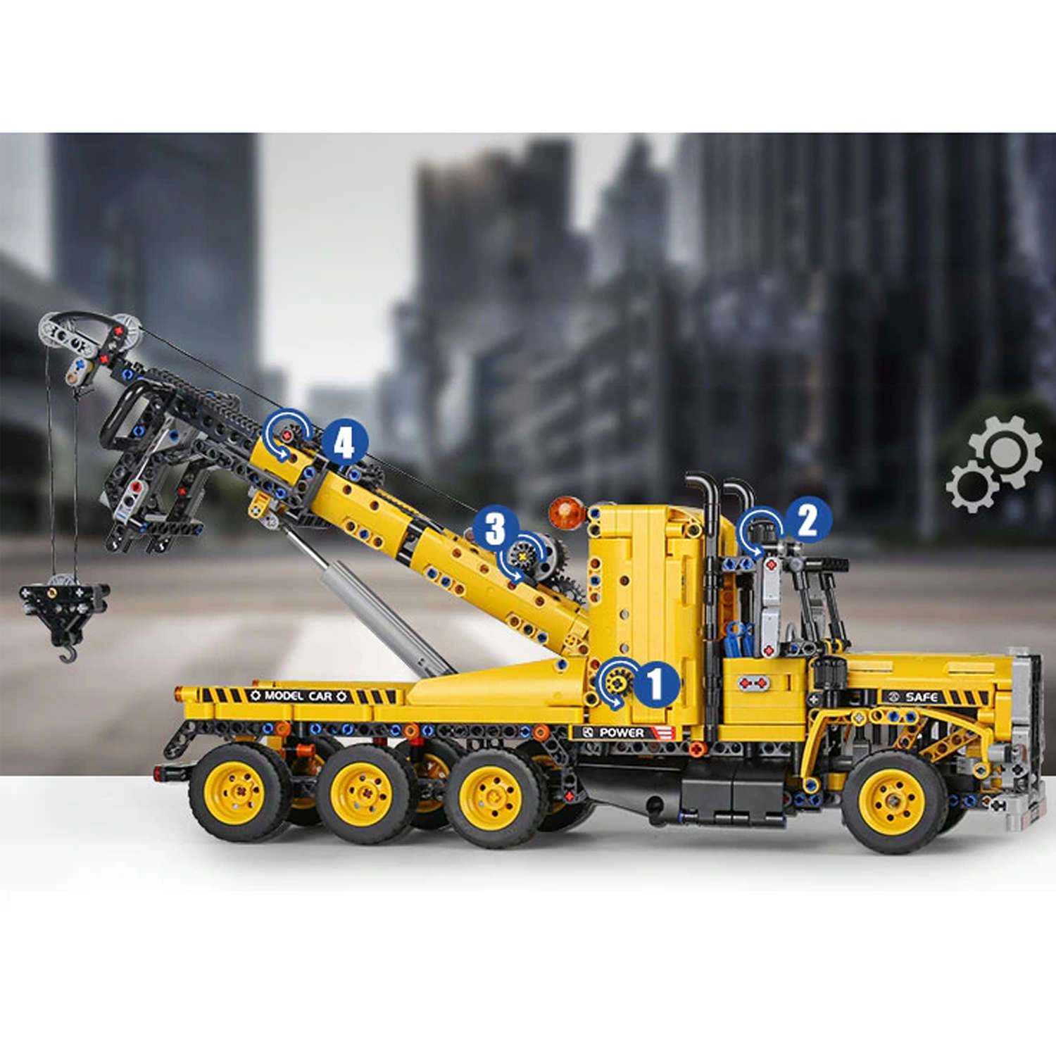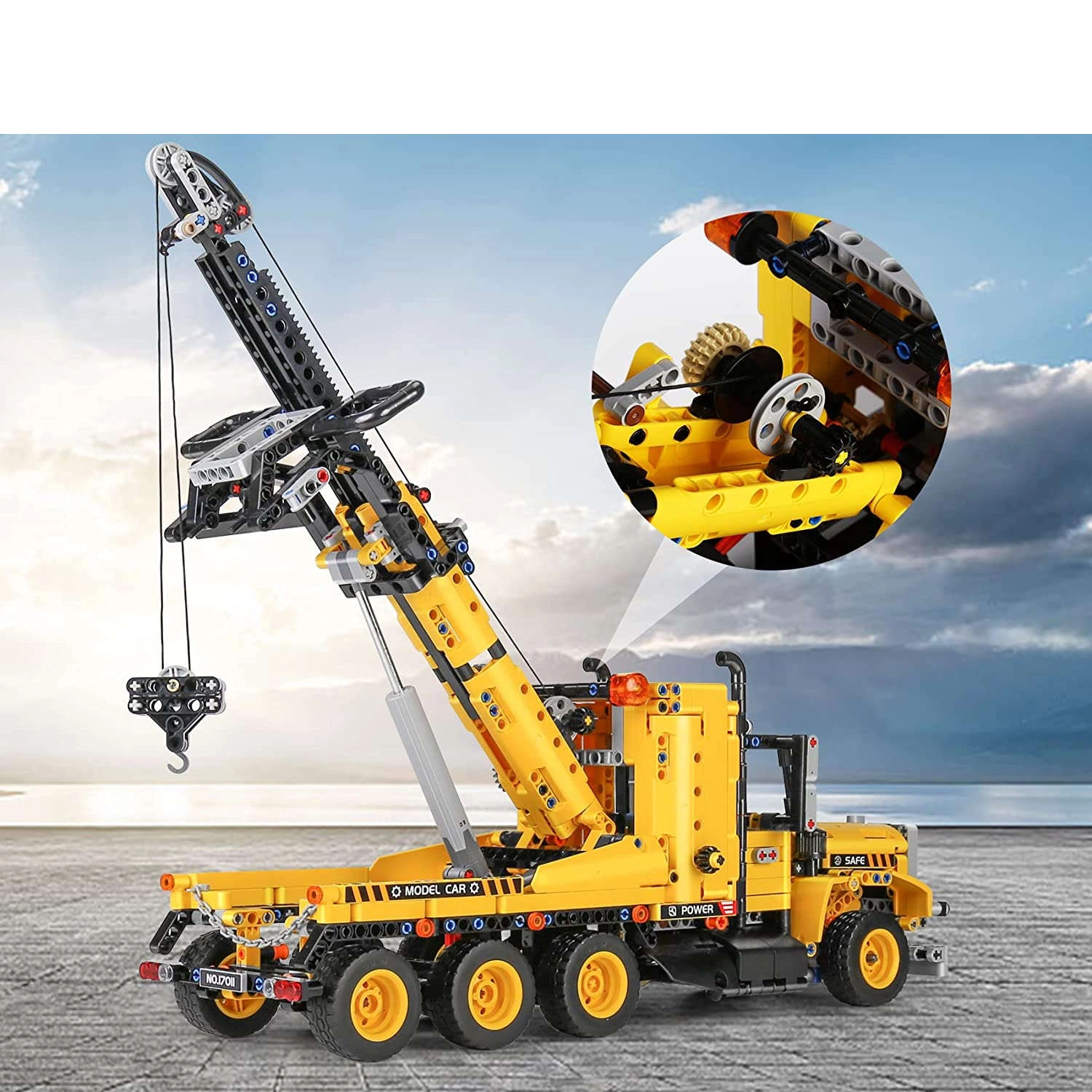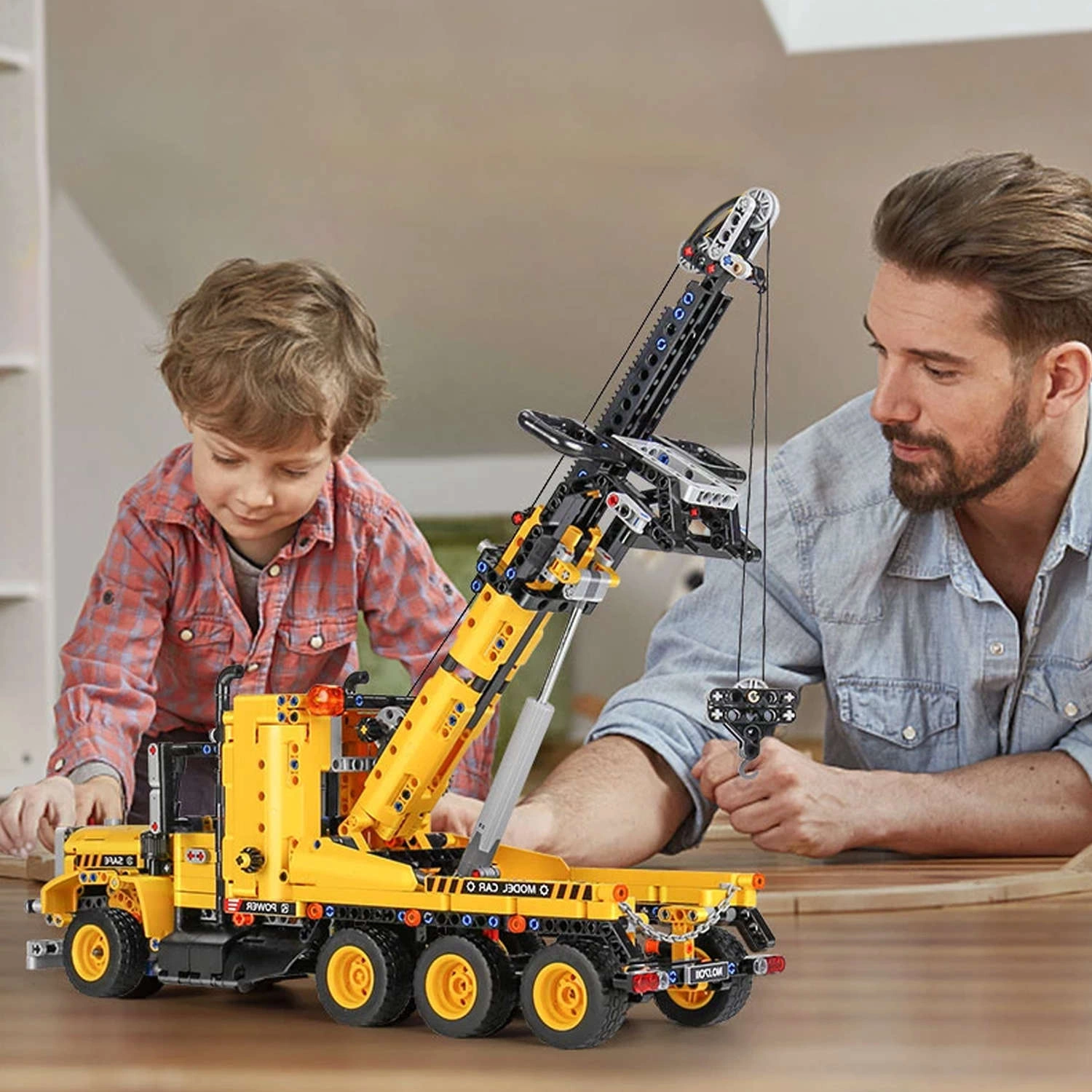Żuraw / dźwig marki Mould King to idealny wybór dla dzieci i dorosłych zainteresowanych światem inżynierii i budownictwa. Kolekcjonerski zestaw - żuraw zabawka jest w wersji statycznej, bez silników elektrycznych i baterii litowych. Obsługuje ruchy dźwignią, odchylanie naczepy, obrót kierownicą oraz kół.