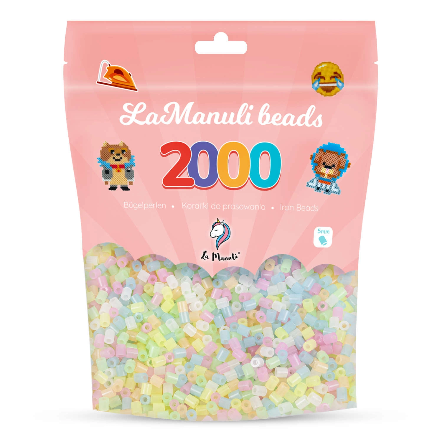 - Zestaw uzupełniający 2000 koralików La Manuli w 6 kolorach świecących w ciemności. Koraliki są umieszczone w szczelnie zapinanym woreczku.