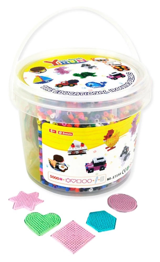 - Aż 5000 koralików do prasowania w przenośnym wiaderku razem z wzorkami i szablonami. Produkt przeznaczony dla dzieci powyżej 6 roku życia.