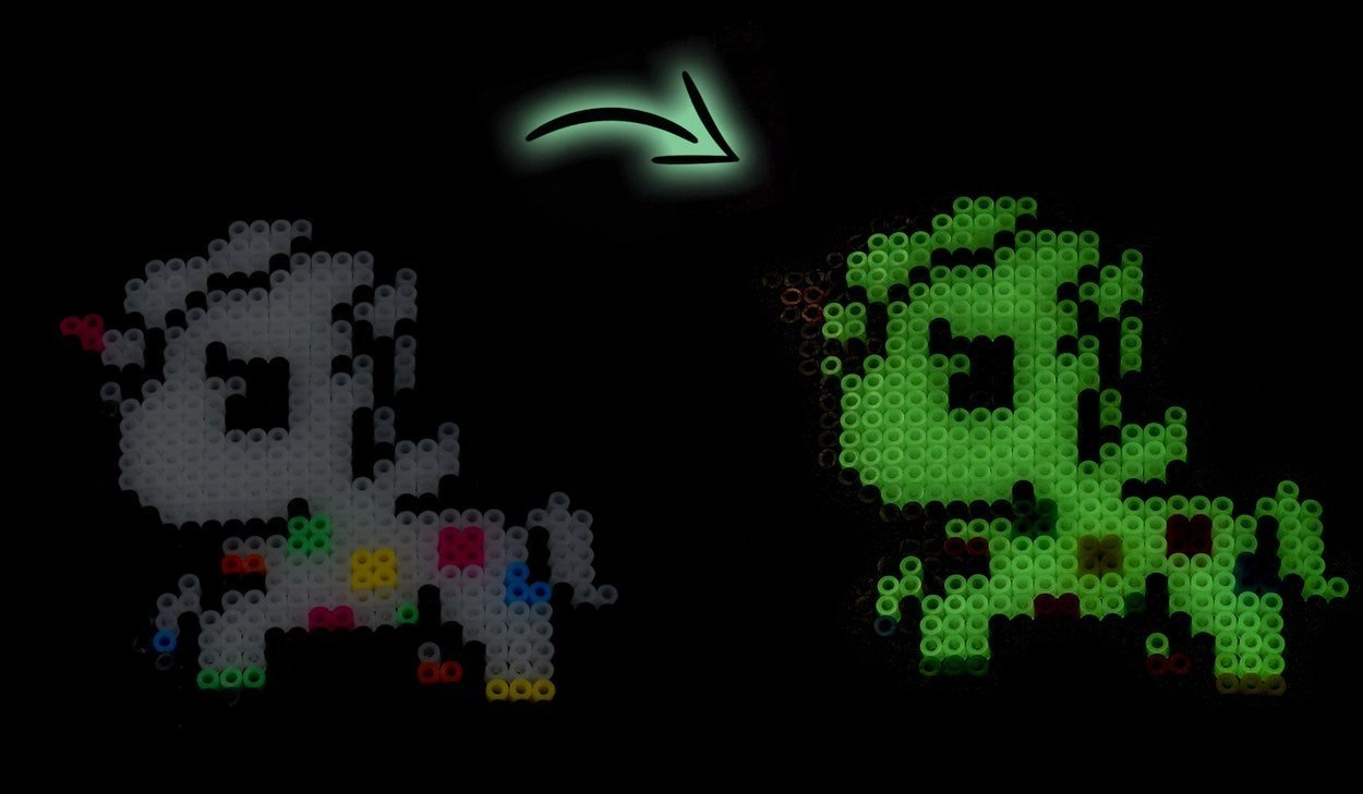 Stwórz własne wzory z bajecznie kolorowych, brokatowych oraz świecących w ciemności koralików do prasowania!