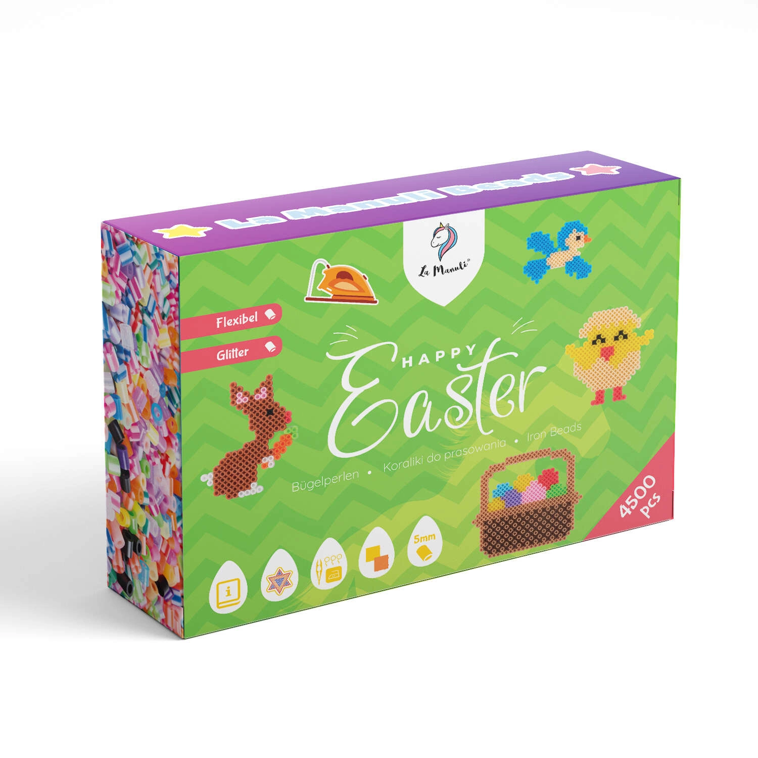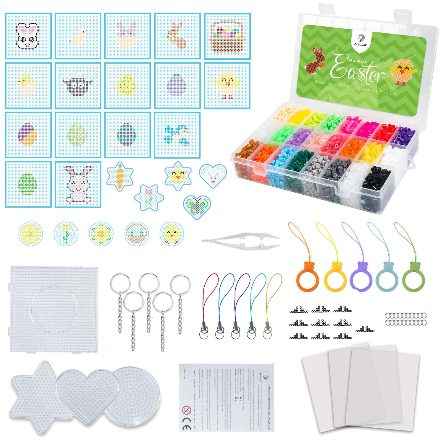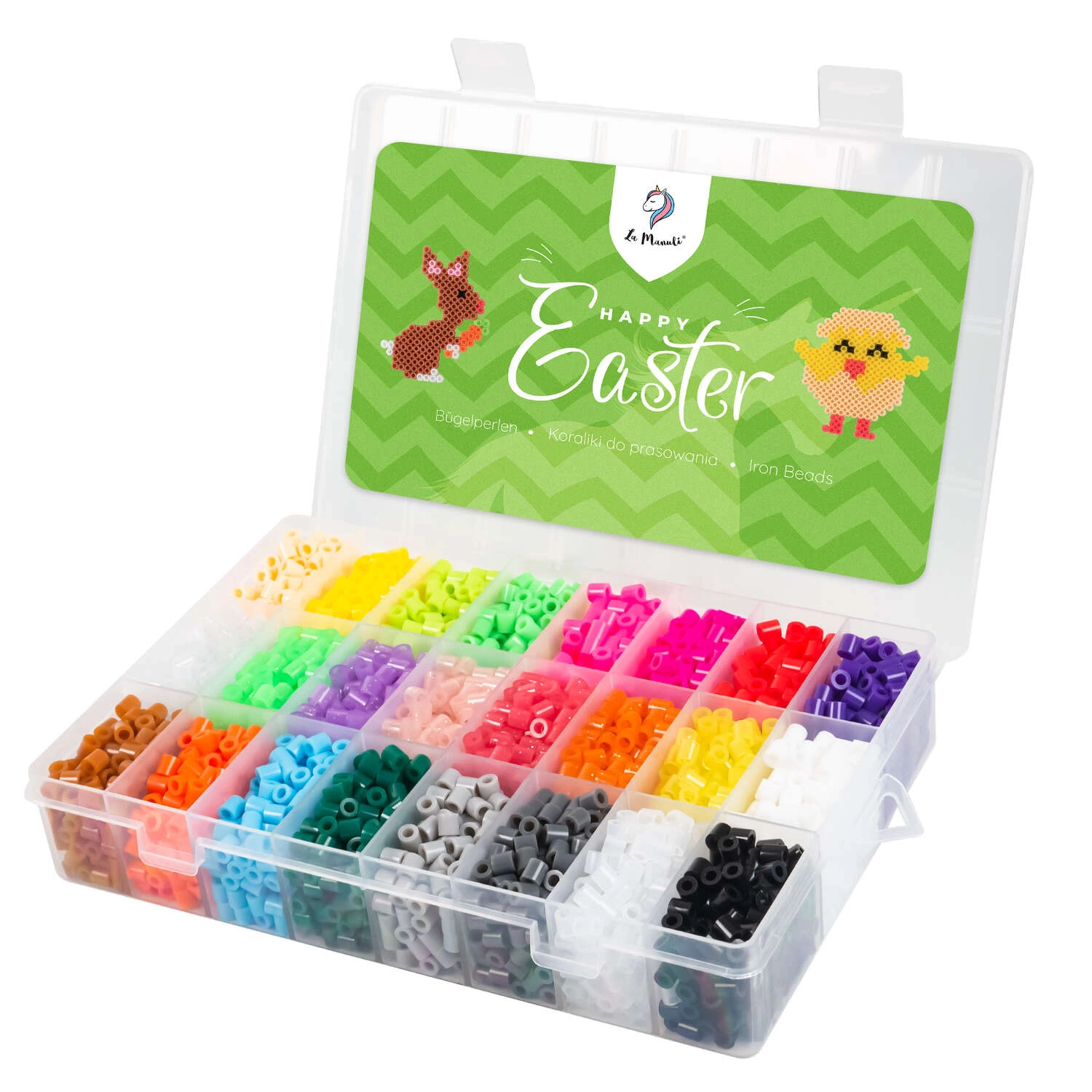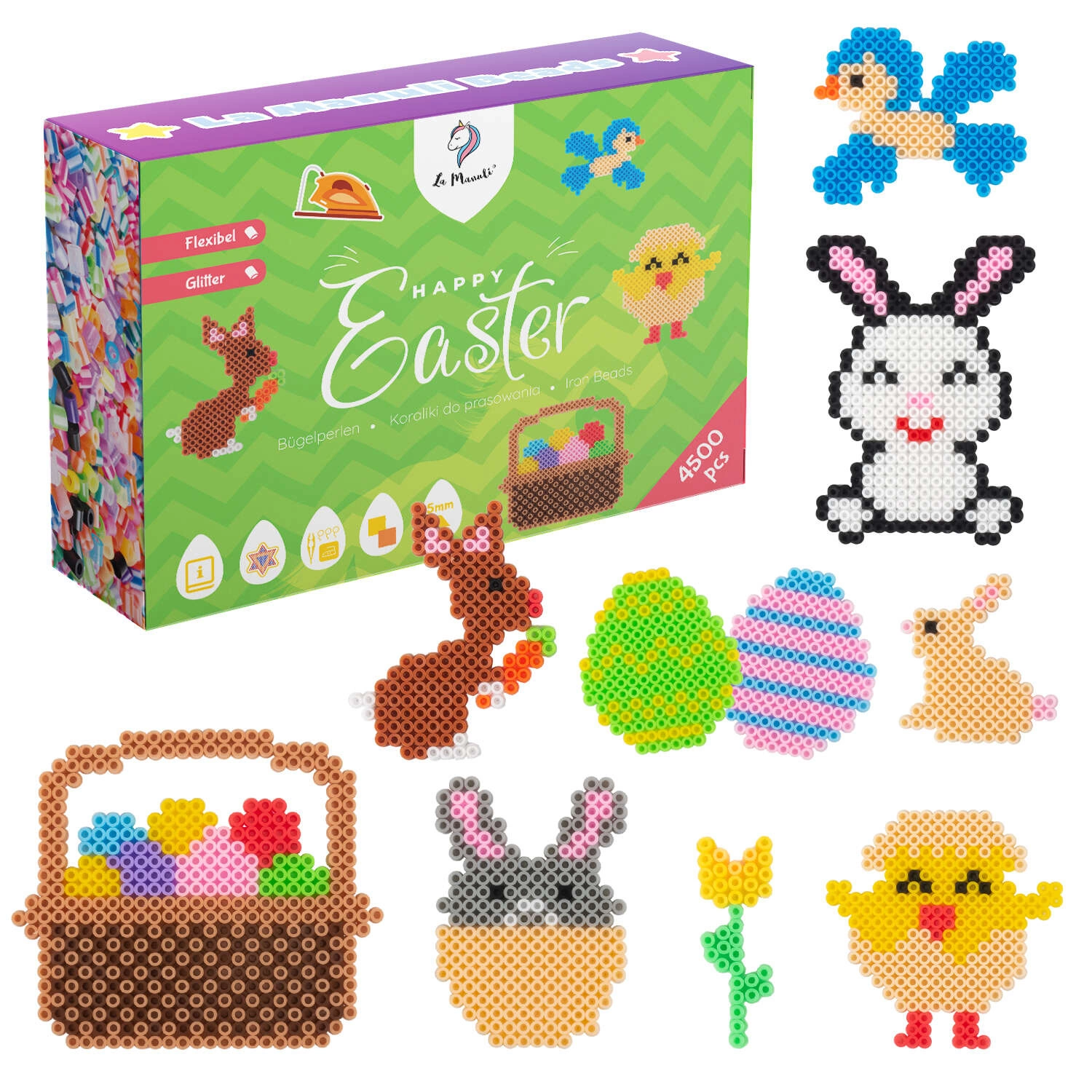- Zestaw koralików do prasowania na Wielkanoc - 4500 koralików w 24 kolorach, 26 wzorów, szablony, akcesoria. Idealny do kreatywnej zabawy i dekoracji.