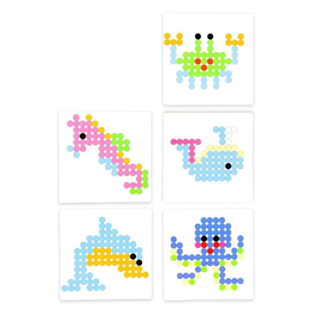 Daj upust swojej kreatywności i stwórz swoje własne wzory lub skorzystaj z naszych szablonów i twórz kolorowe projekty. Niewykorzystane koraliki nawlecz na nitkę i stwórz własnoręczny naszyjnik z kolorowych korali.