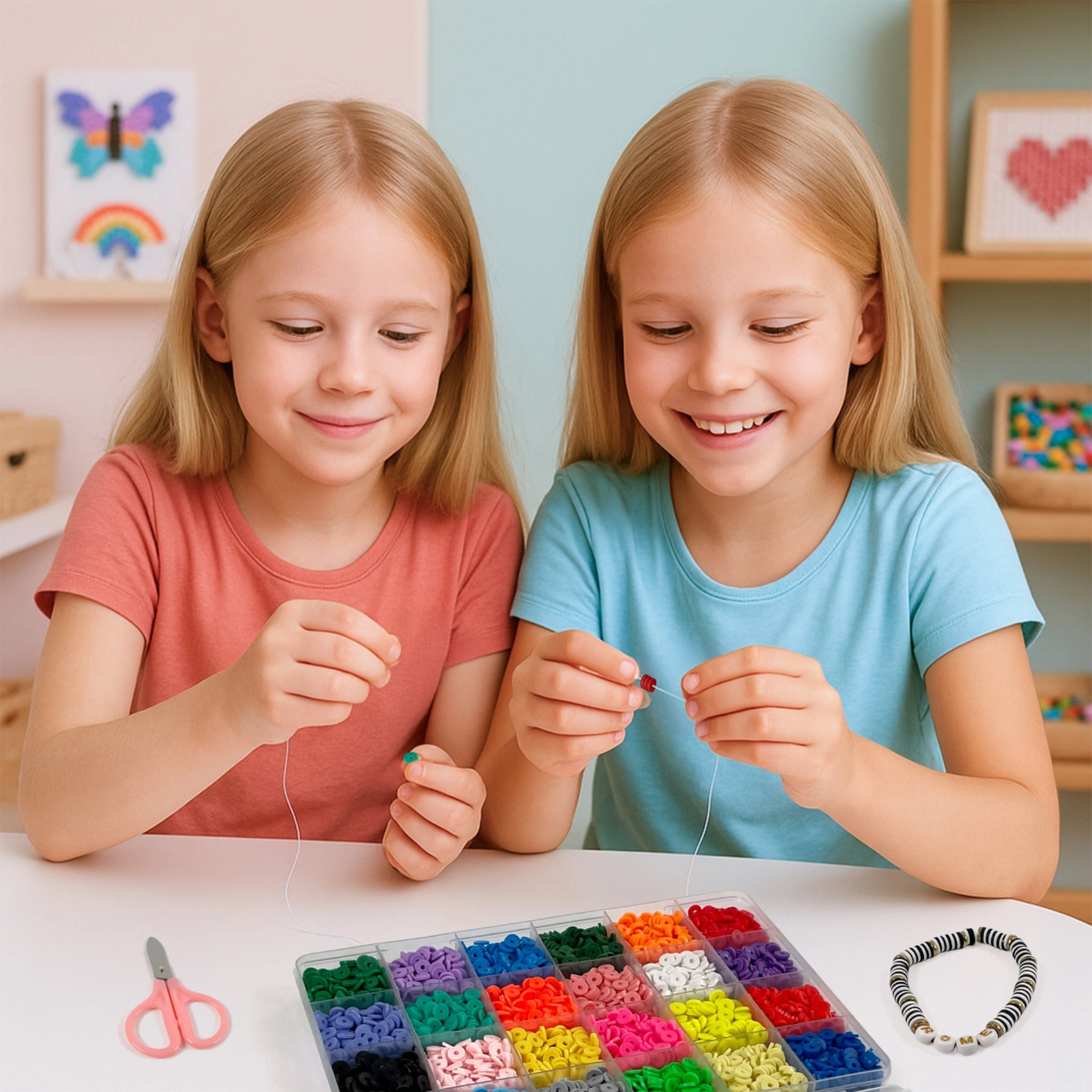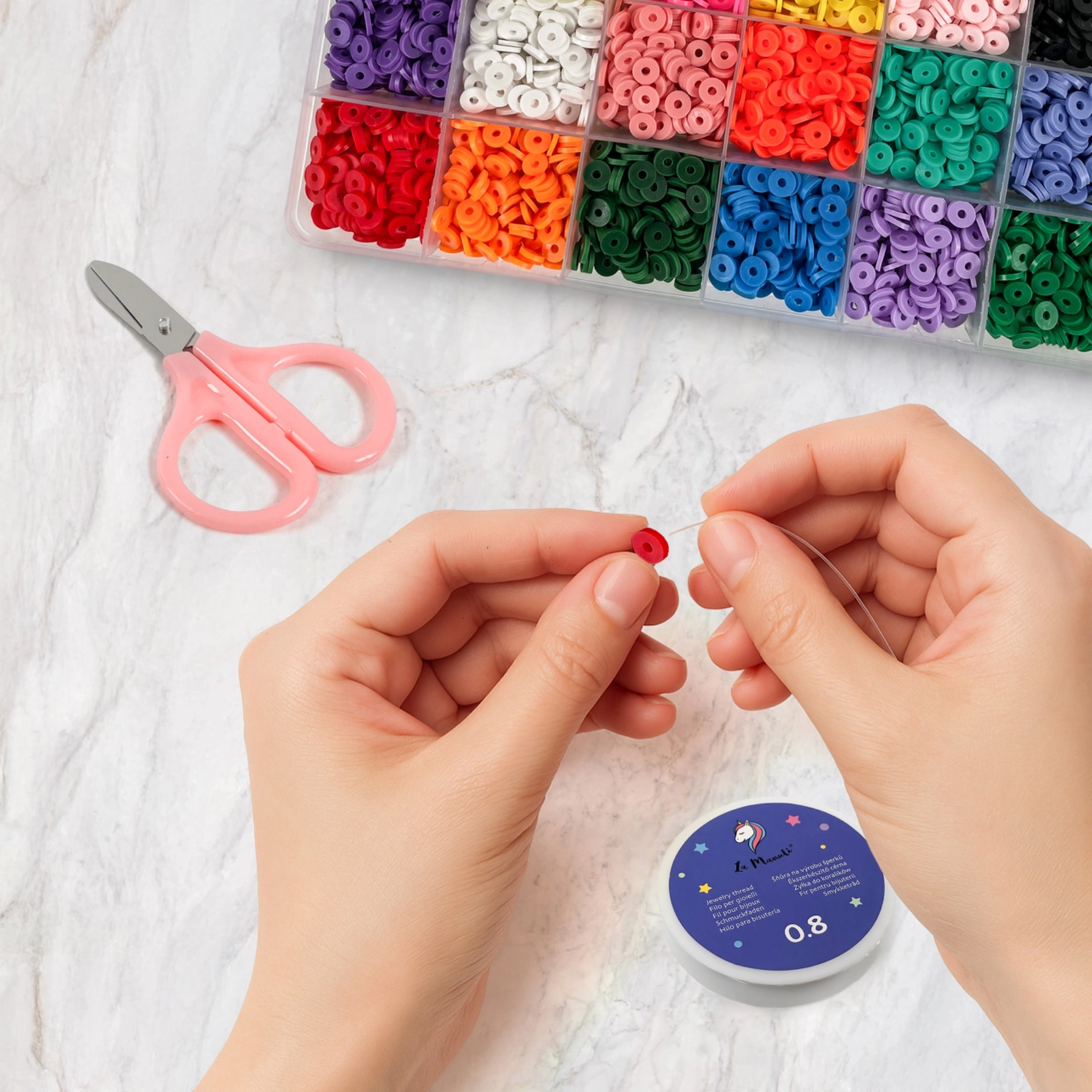 - Zestaw kreatywny z 5500 płaskimi koralikami w 24 kolorach oraz akcesoriami do tworzenia biżuterii. Idealny do bransoletek, naszyjników i zawieszek. Dla dzieci, młodzieży i dorosłych – setki pomysłów na twórczą zabawę.