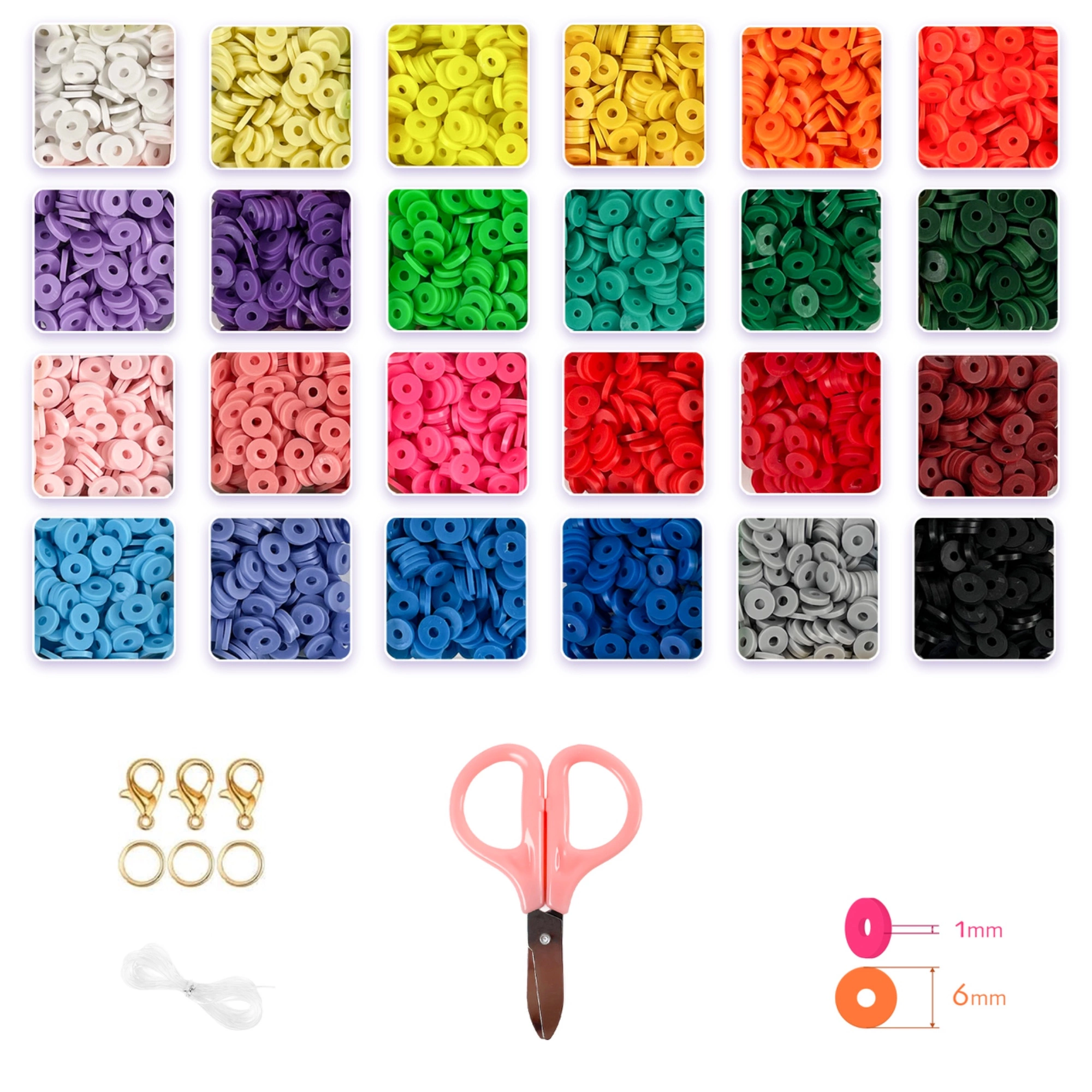Koraliki gliniane płaskie 6 mm x 1 mm - łącznie 5500 sztuk w 24 kolorach