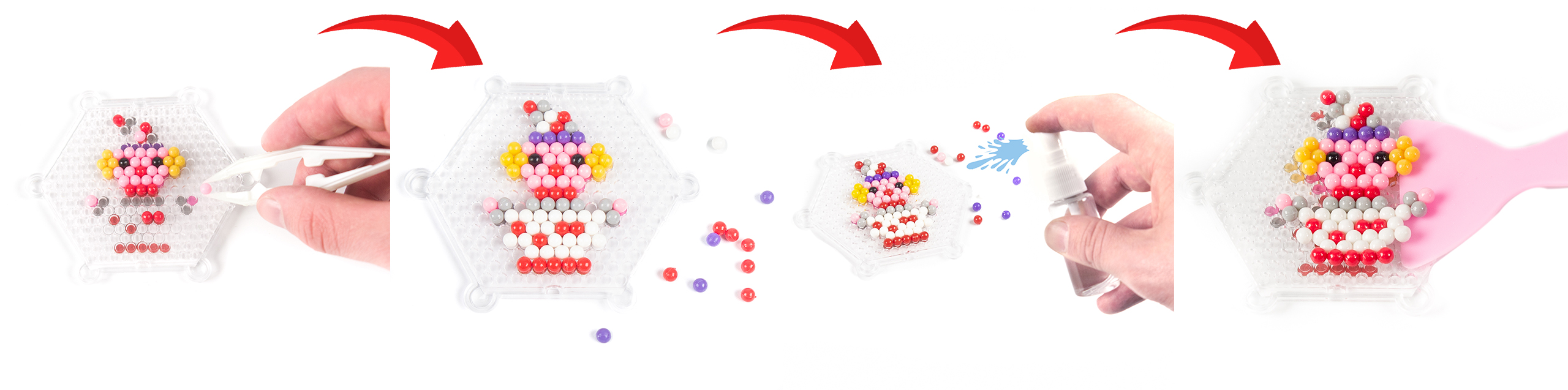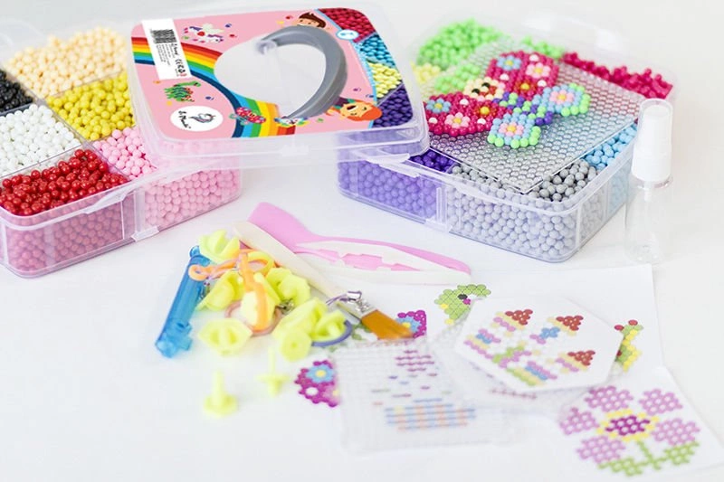 Są to w pełni bezpieczne koraliki, dzięki którym Twoje dziecko rozwija swoją wyobraźnie poprzez ich układanie. Koraliki wodne to ciekawa alternatywa dla standardowego rysowania. Do ich połączenia wystarczy niewielka ilość wody, wystarczy, że zwilżysz ułożony przez siebie wzór dołączonym do zestawu spryskiwaczem.