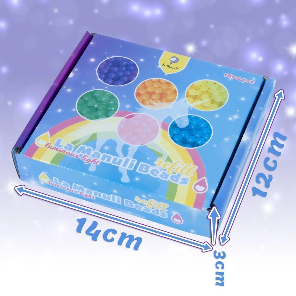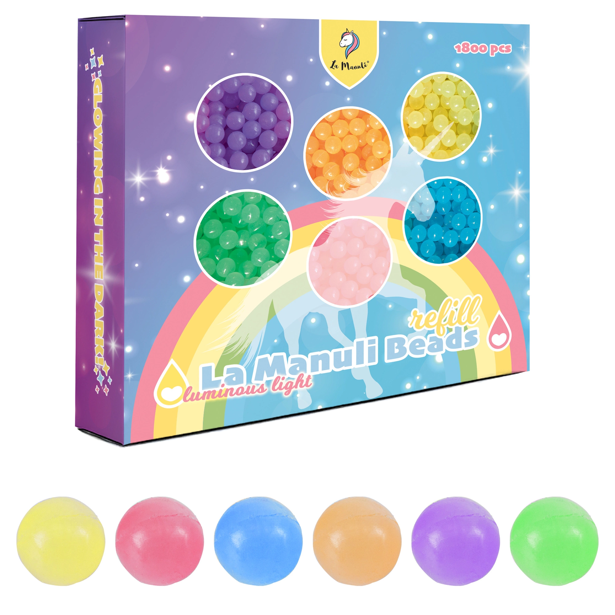 - Zestaw 1800 koralików wodnych w 6 świecących w ciemności kolorach. Zainspiruj się do stworzenia całkiem nowych wzorów.
