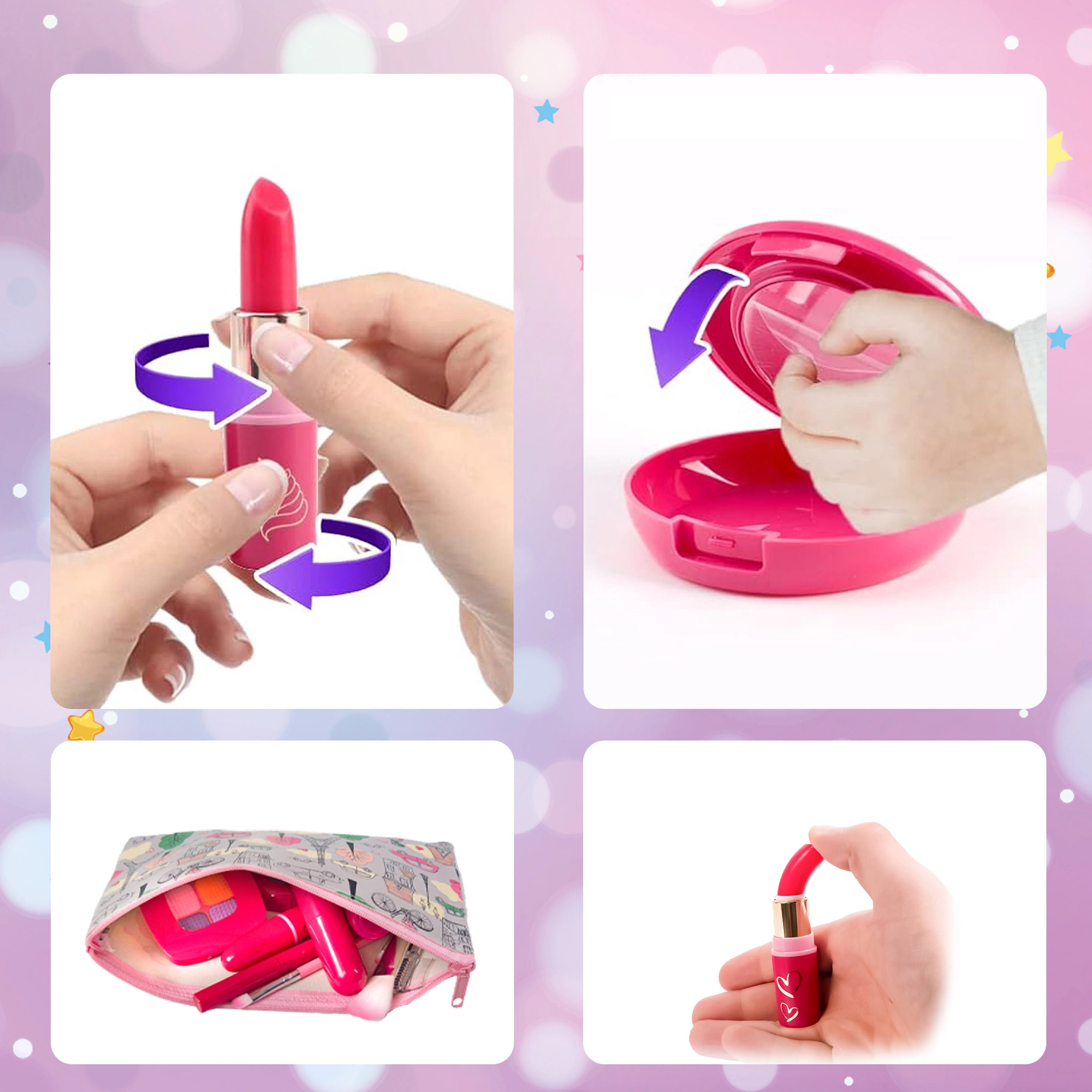 Taki zestaw zabawek do makijażu może zaspokoić ciekawość, a jednocześnie pomoże rozwijać kreatywność, wyobraźnię i zdolność uczenia się, zarazem ciesząc się zabawą. Nadaje się do zwykłej zabawy w pojedynkę jak i również do zabawy z przyjaciółmi. Ta kosmetyczka jest jak skrzynia skarbów pełna magii, która przyciąga uwagę małej dziewczynki.