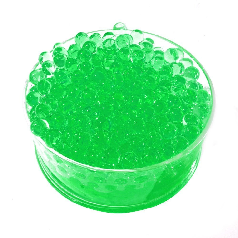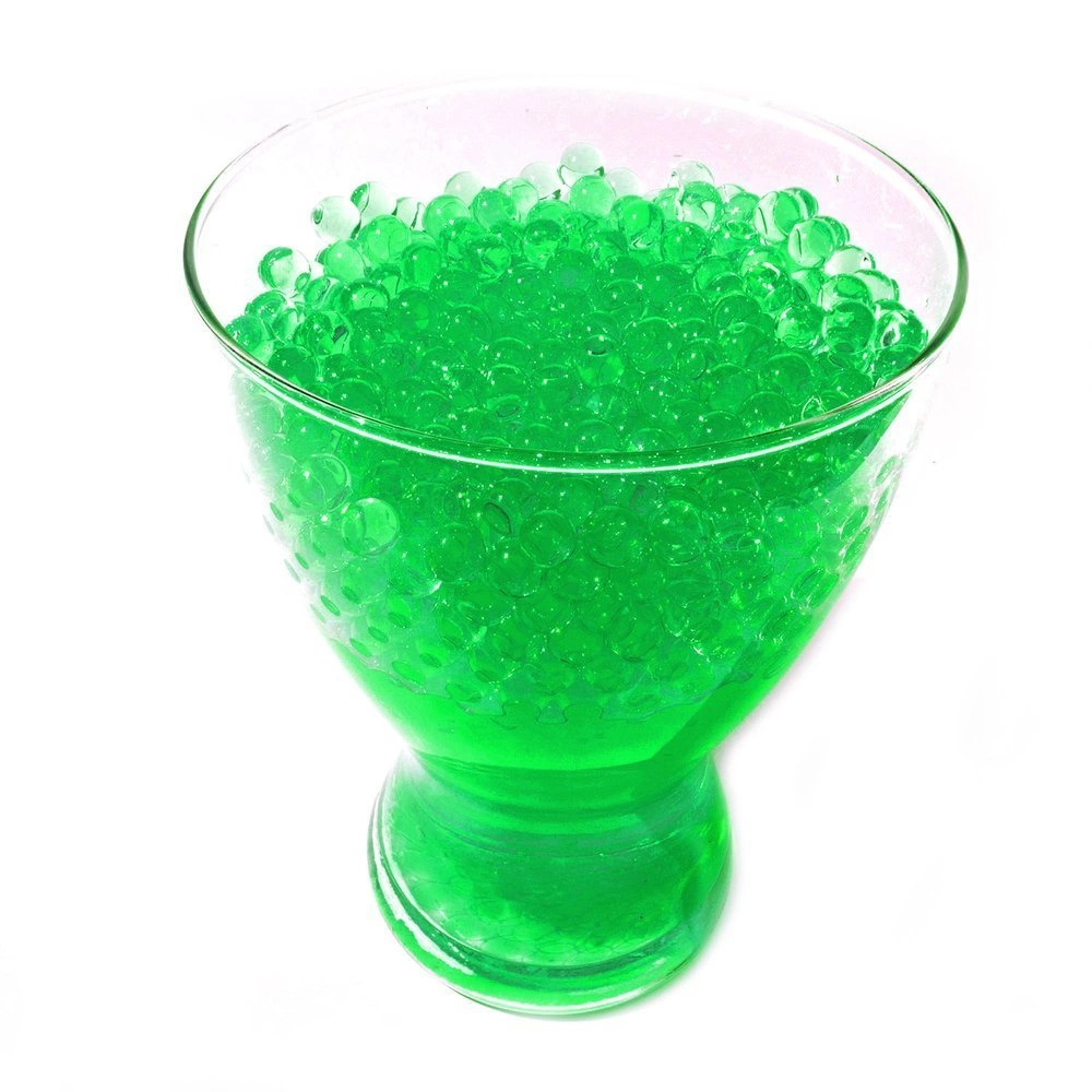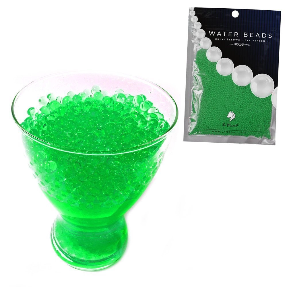 - Dekoracyjne kuleczki wodne, przypominające perły z właściwością hydrofilową w kolorze jasno zielonym.