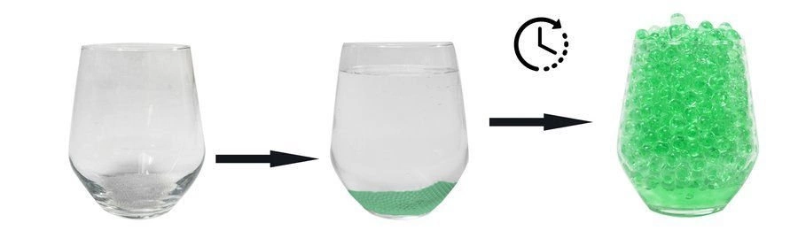 Żelowe, nietoksyczne kulki mogące służyć jako elementy dekoracyjne, które pochłaniają wodę i nawet kilkunastokrotnie zwiększają swoją objętość.
