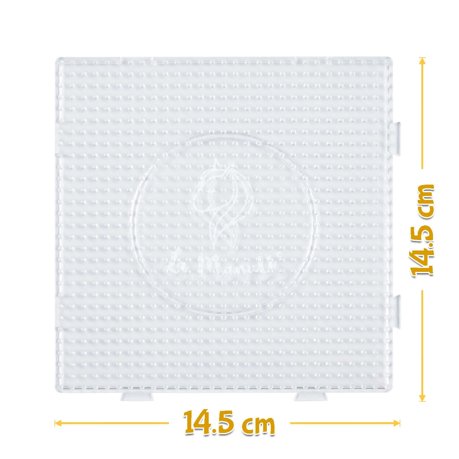 - Uniwersalna podkładka do koralików do prasowania w kształcie kwadratu o boku 14,5 cm. Podkładka jest przezroczysta, co umożliwia ułożenie szablonu pod podkładkę by jeszcze sprawniej układać wzory.