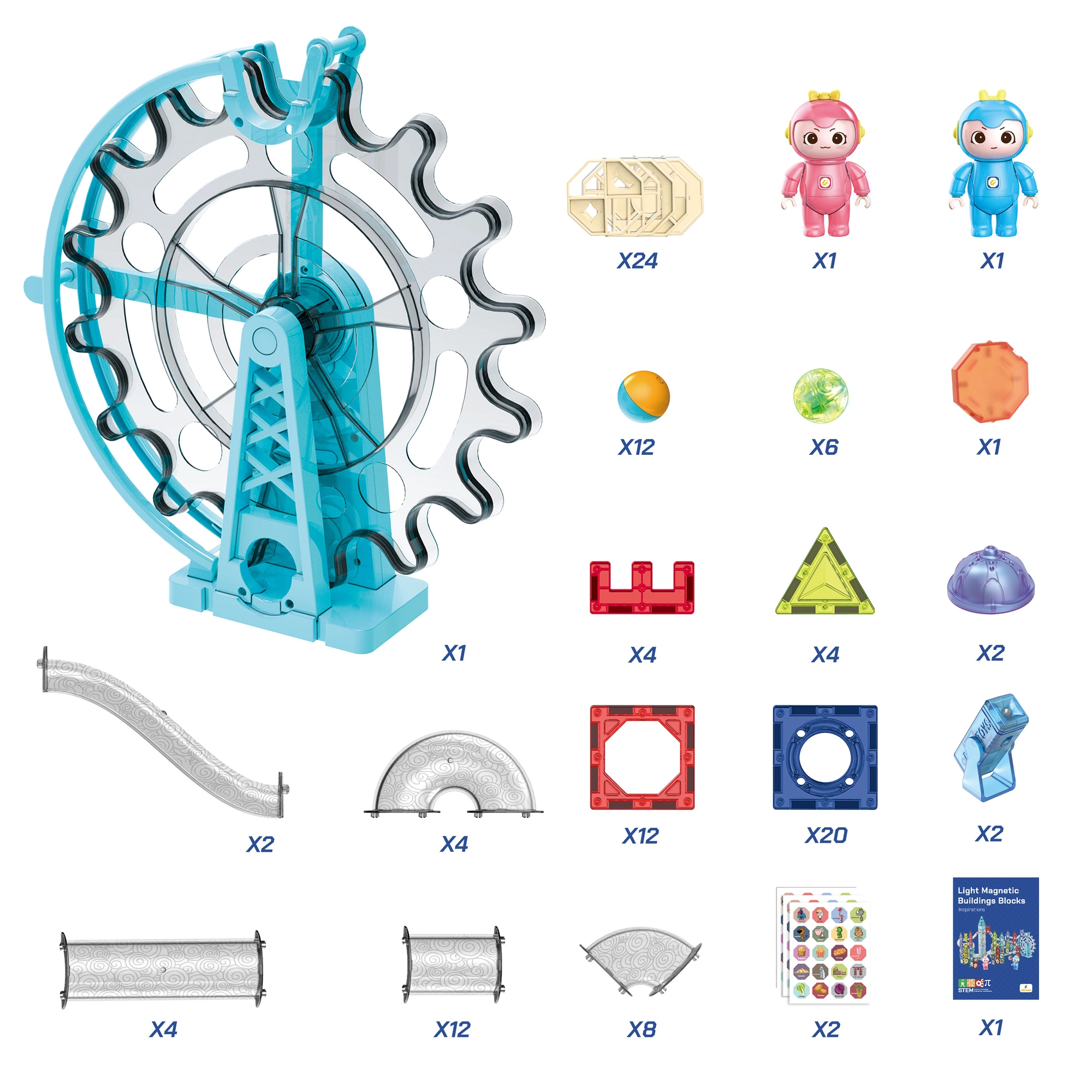 Zabawa klockami magnetycznymi rozwija wyobraźnię przestrzenną, uczy kształtów i kolorów oraz pozwala zdobyć praktyczne doświadczenie w dziedzinach związanych z nauką, technologią, inżynierią, sztuką i matematyką. Elementy zestawu wykonane są z nietoksycznego plastiku ABS, z zaokrąglonymi krawędziami, co gwarantuje bezpieczeństwo podczas zabawy.