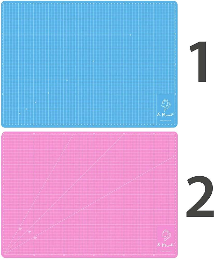 Oznaczone prowadnice centymetrowe ułatwiają dokładne odmierzanie, a linie do pomiaru kątów pomagają w wycinaniu kształtów geometrycznych. Mata może być również wykorzystywana jako podkładka do pisania lub pod mysz.