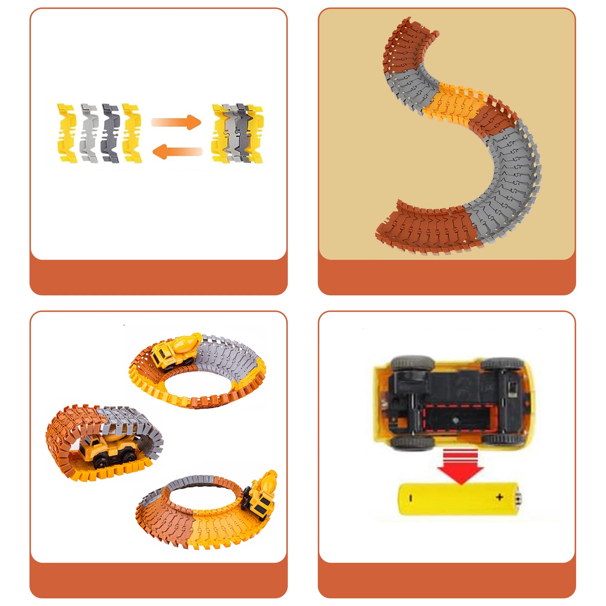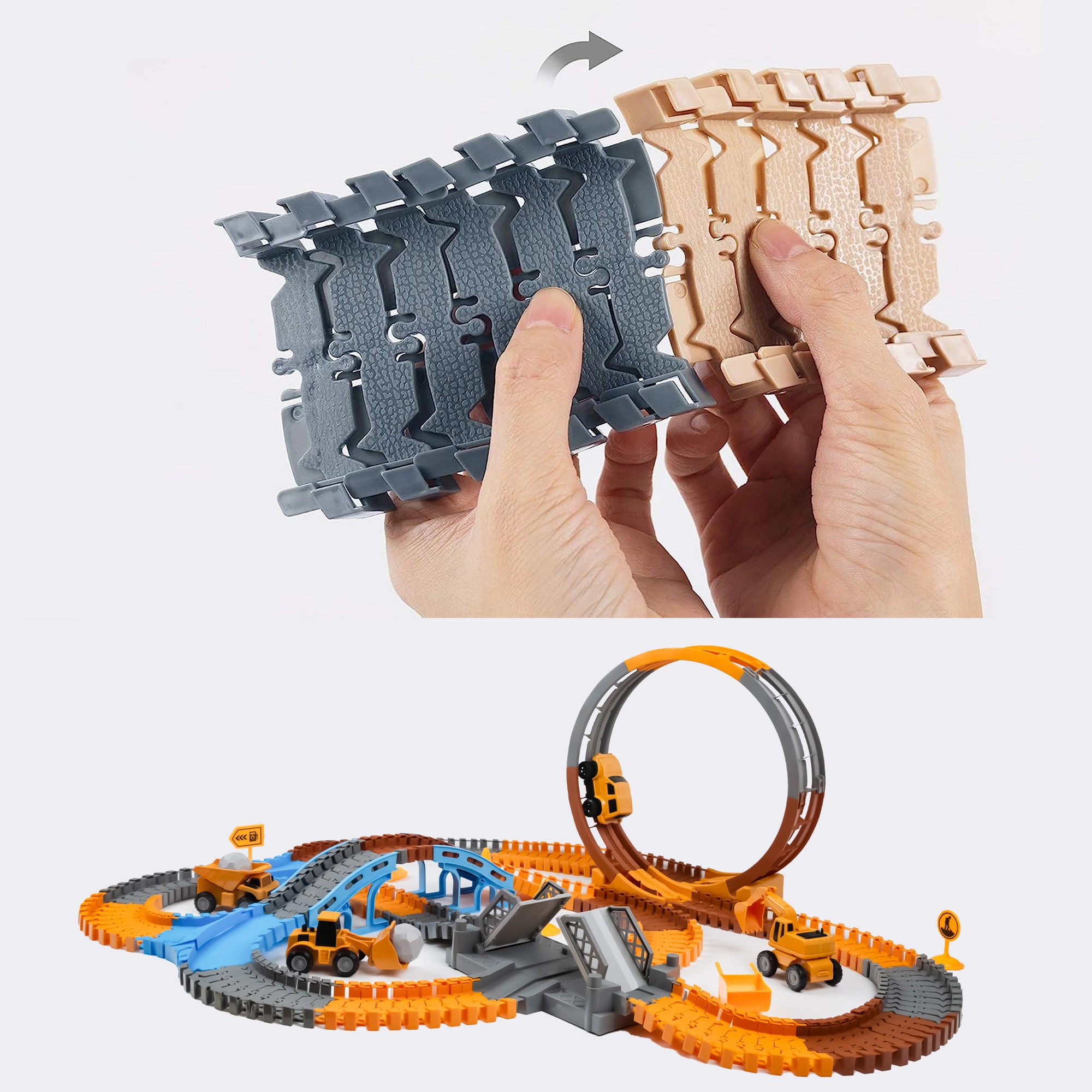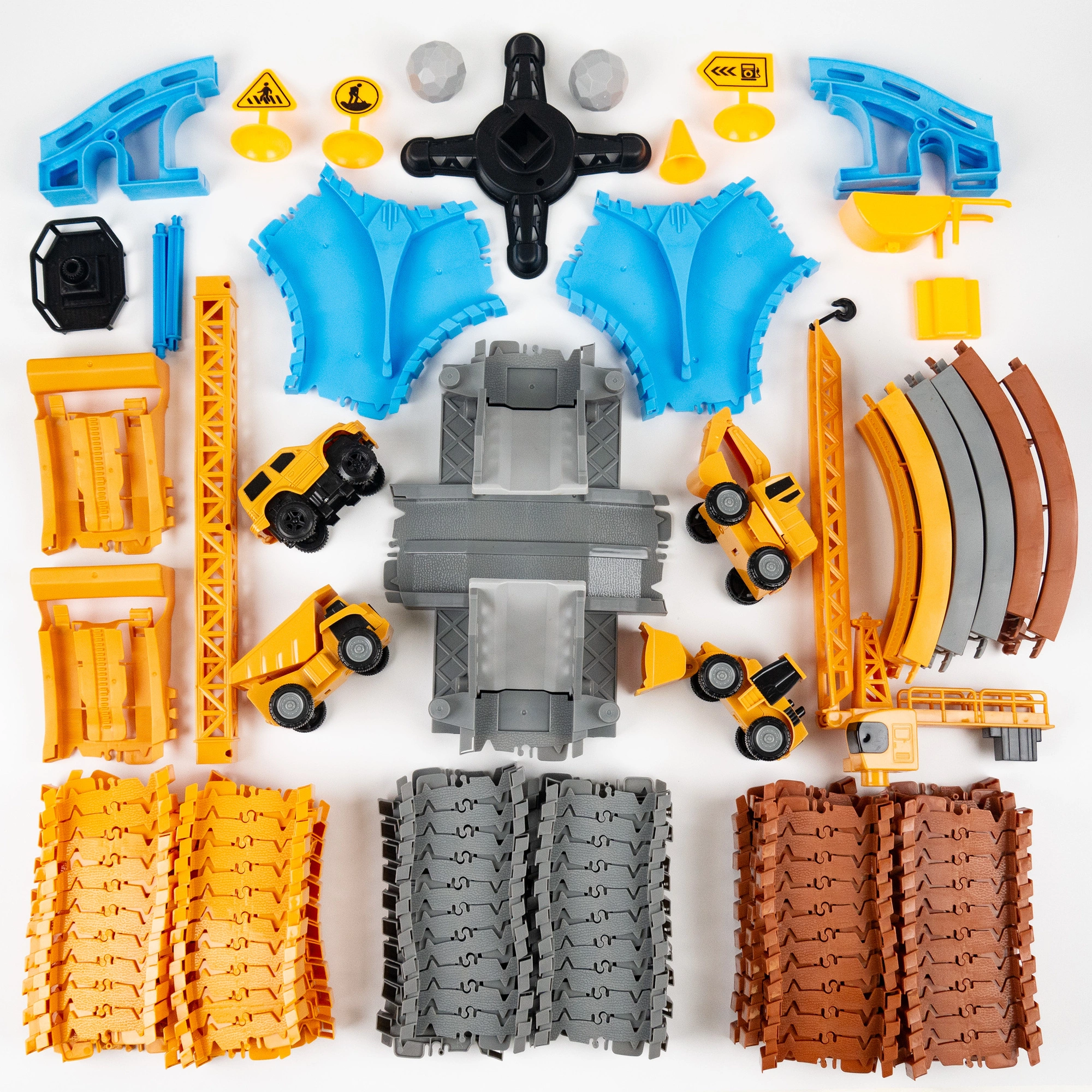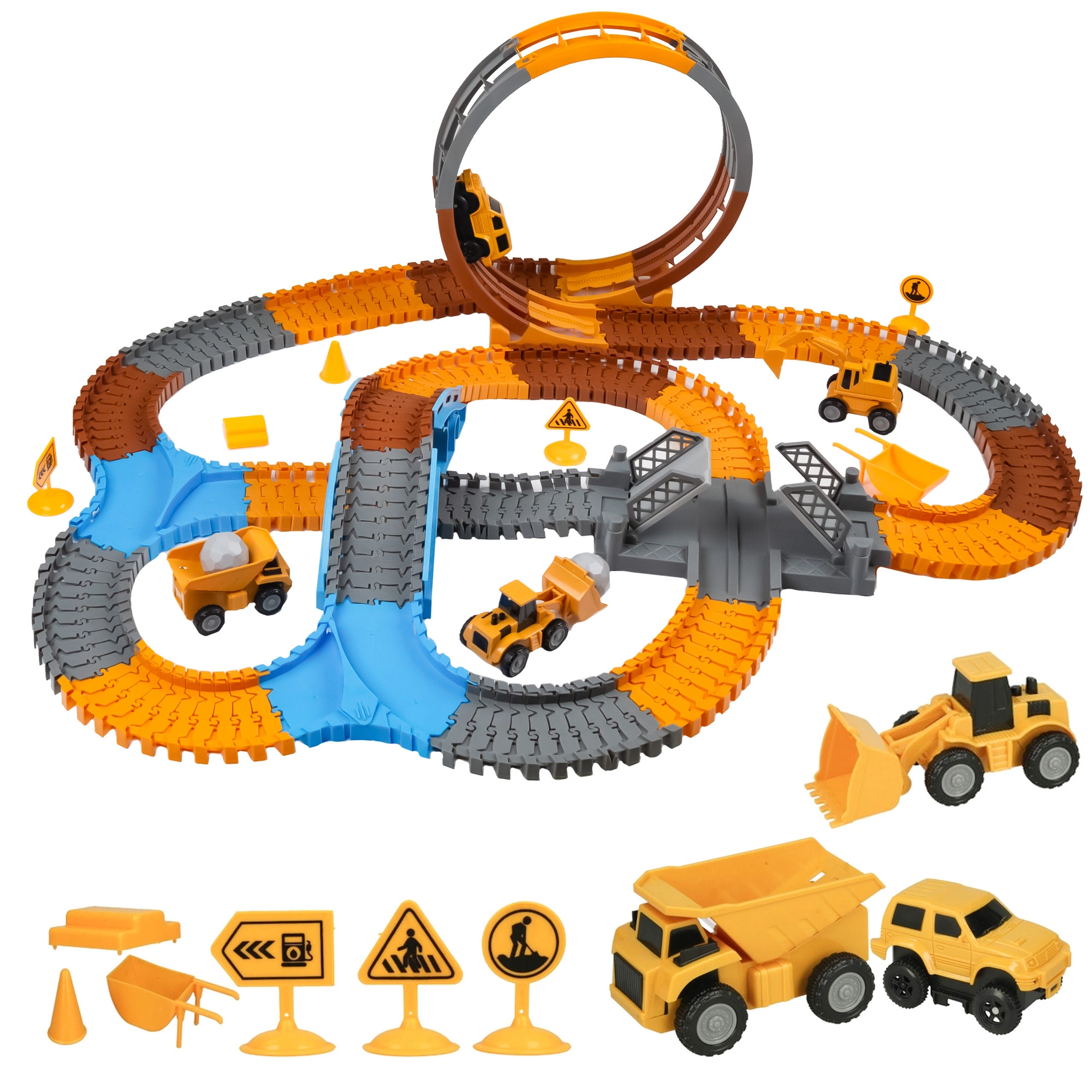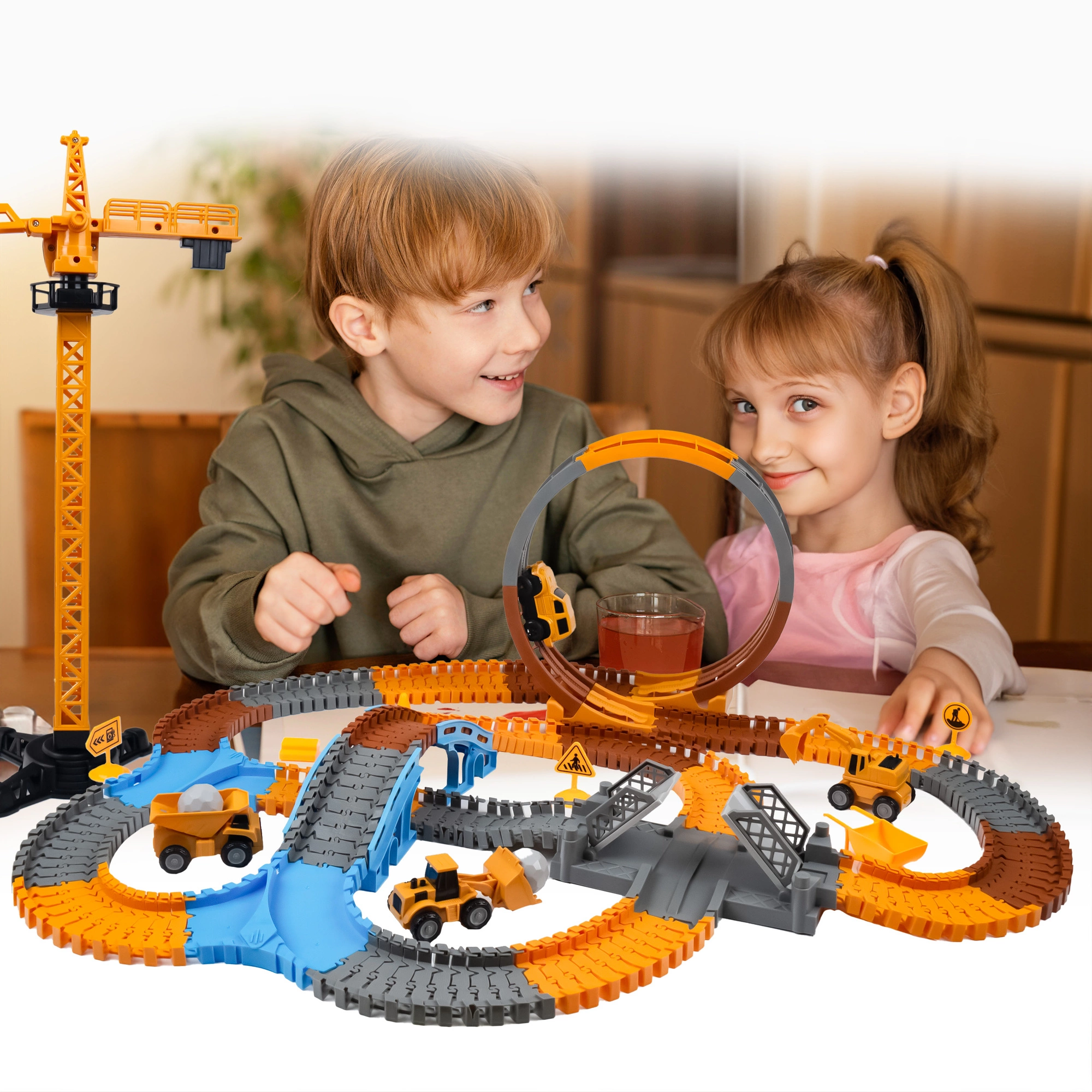 - Ten zestaw torów wyścigowych o tematyce budowlanej zawiera 243 części, które zachęcają dzieci do konstruowania własnych przemysłowych światów.