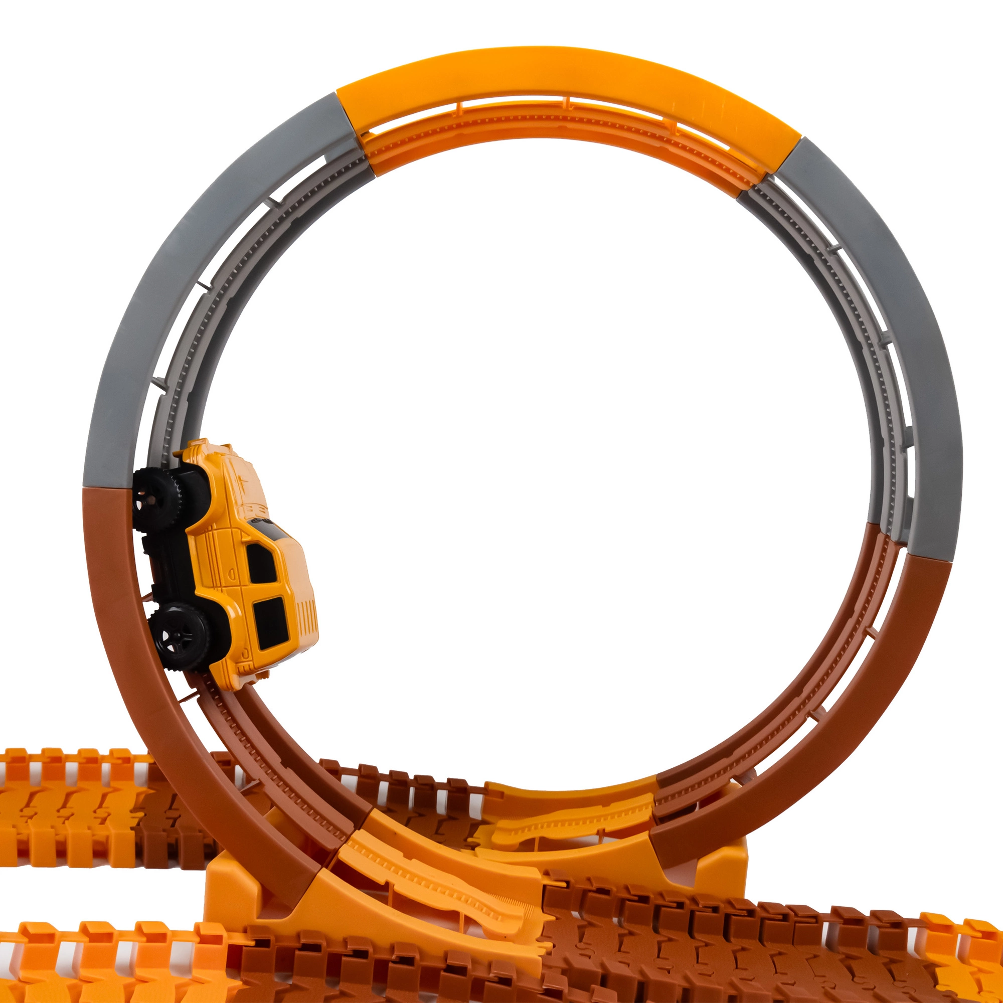 Zestaw torów wyścigowych o tematyce budowlanej zawiera 243 części, które zachęcają dzieci do konstruowania własnych przemysłowych światów. Zbuduj dźwigi, kompleksy dróg, i wiele więcej, rozwijając przy tym wyobraźnię dziecka.