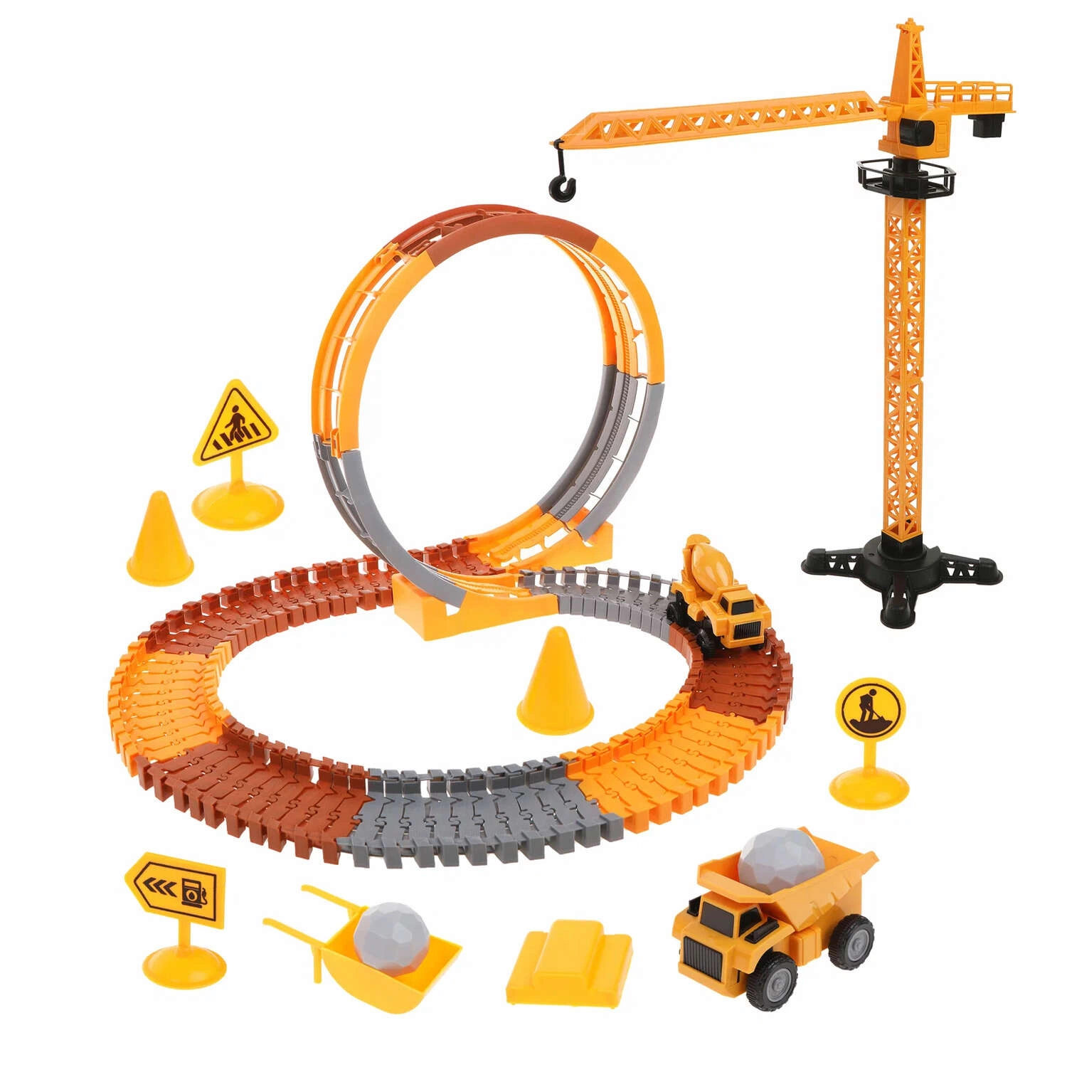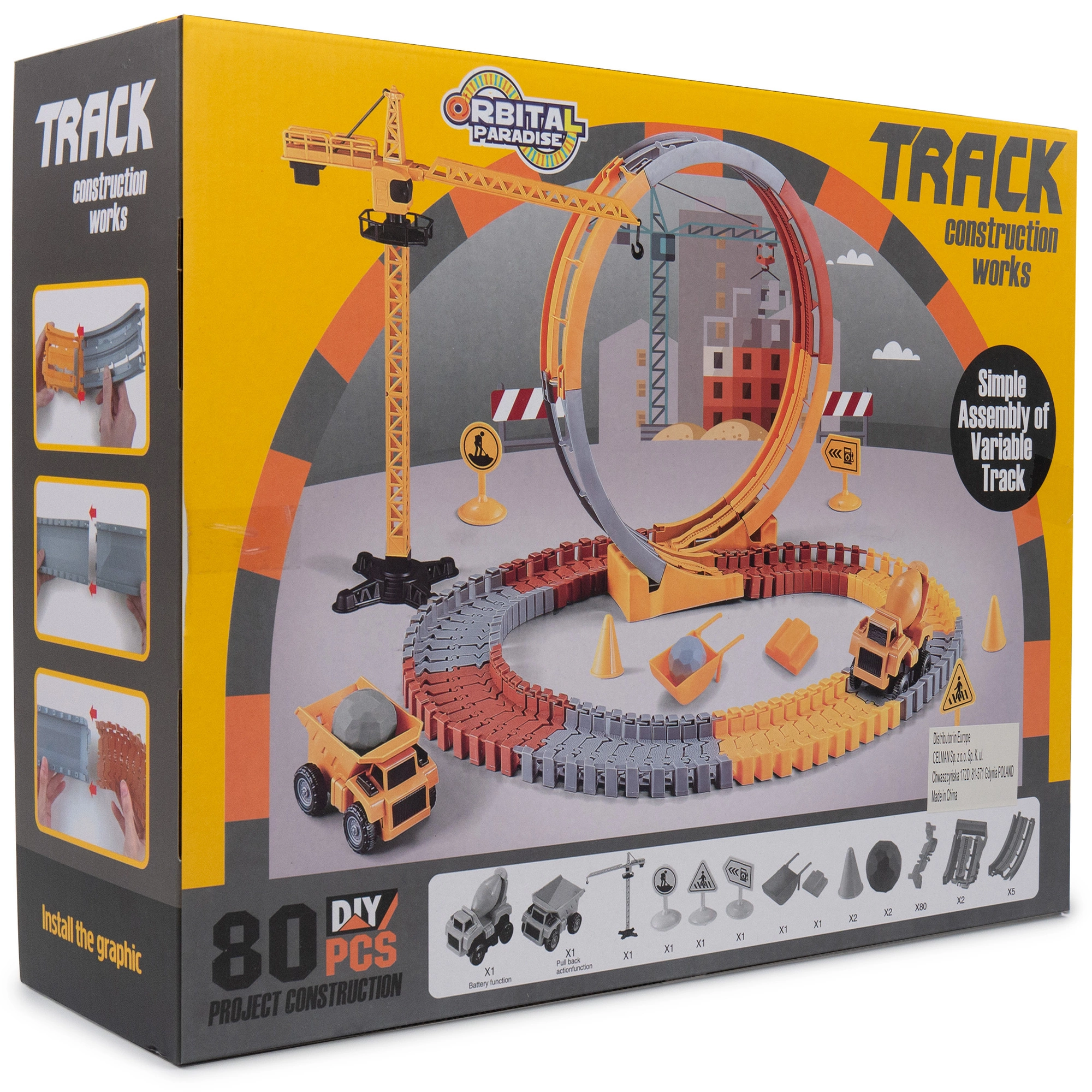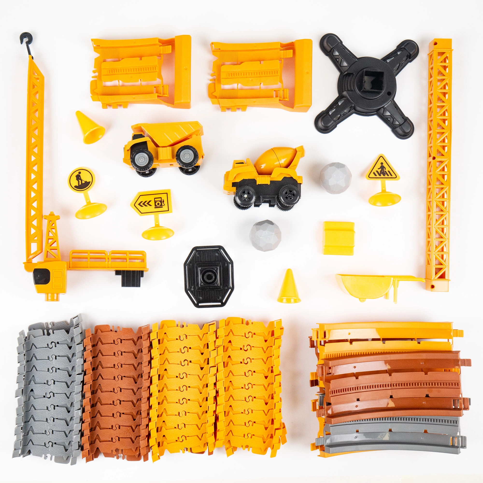 - Ten zestaw torów wyścigowych o tematyce budowlanej zawiera 80 części, które zachęcają dzieci do konstruowania własnych przemysłowych światów.