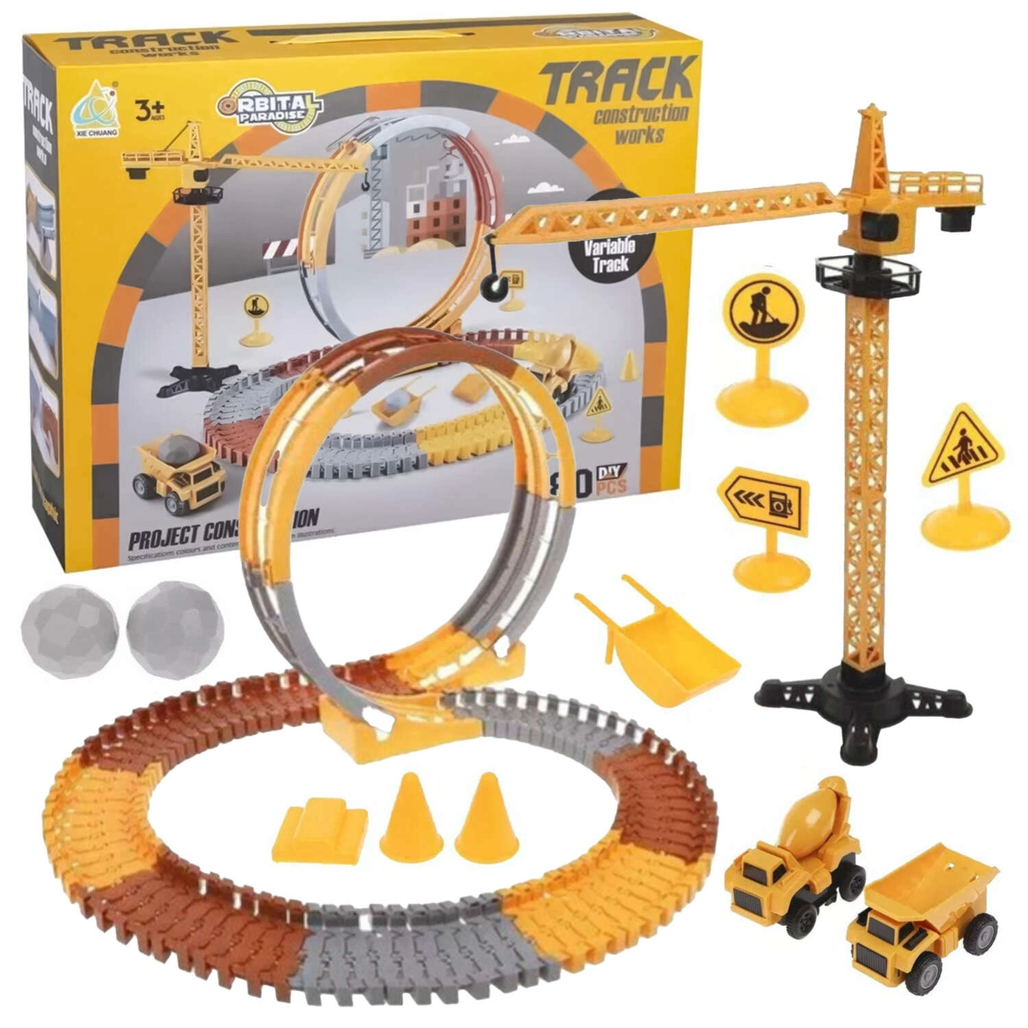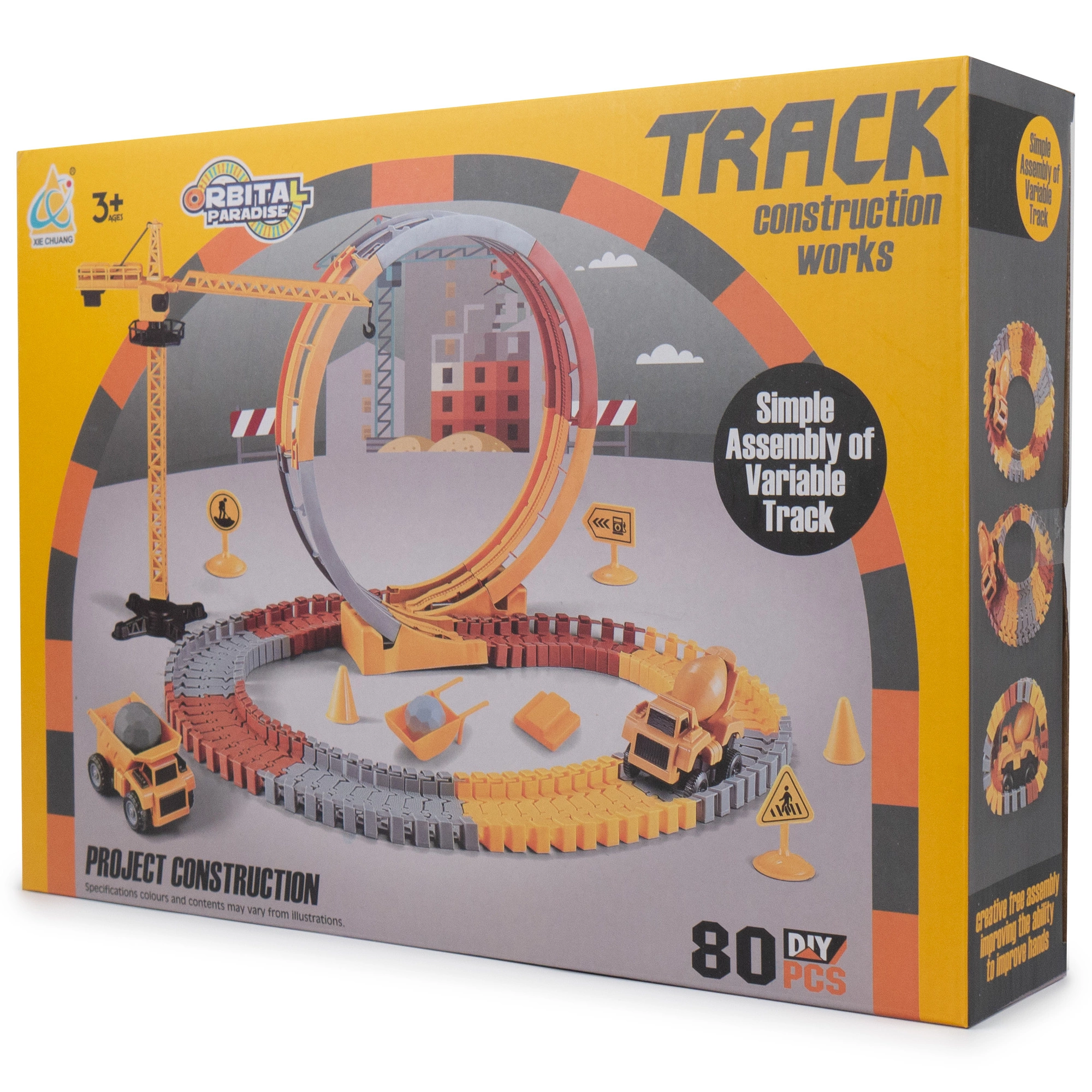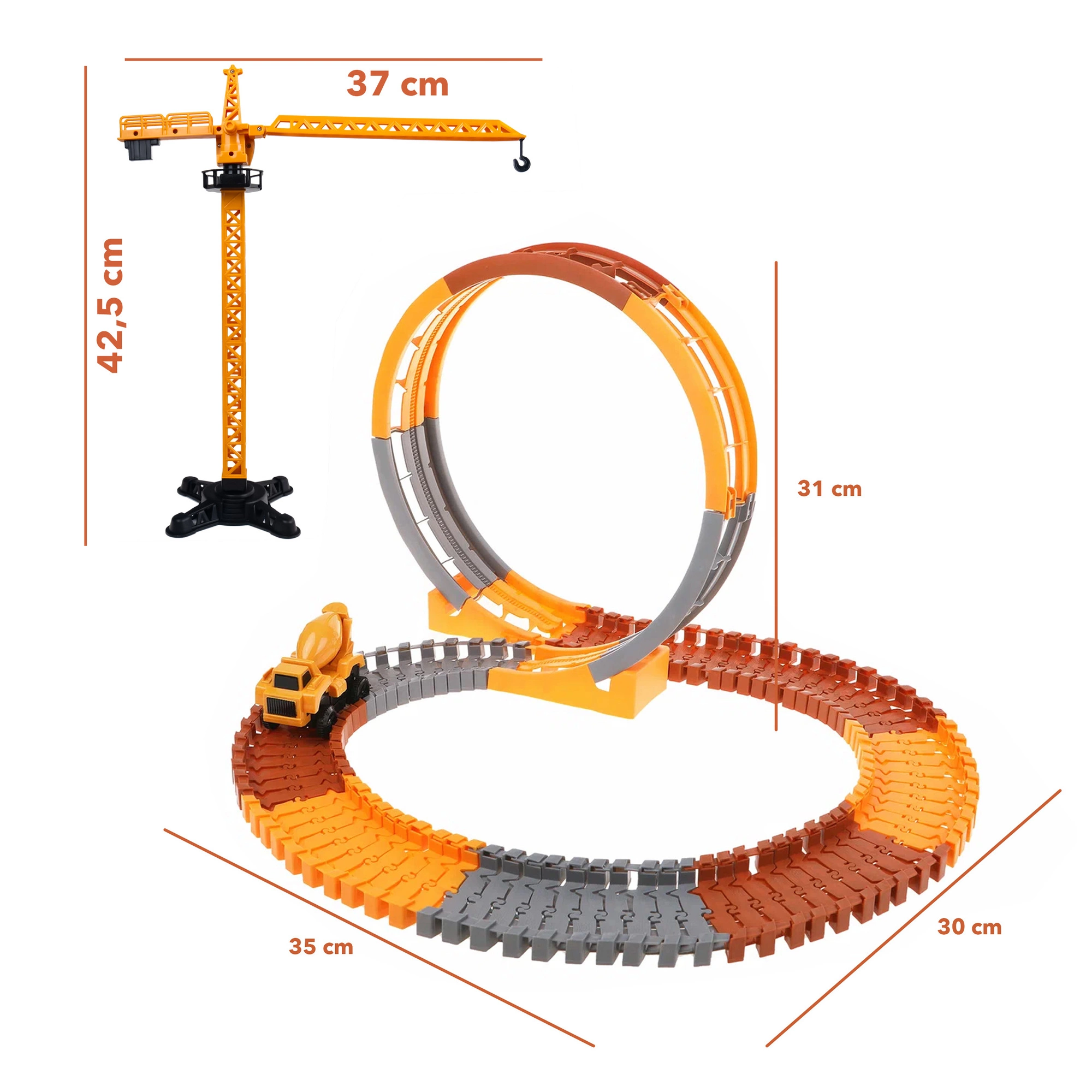 Zestaw torów wyścigowych o tematyce budowlanej zawiera 80 części, które zachęcają dzieci do konstruowania własnych przemysłowych światów. Zbuduj dźwigi, kompleksy dróg, i wiele więcej, rozwijając przy tym wyobraźnię dziecka.