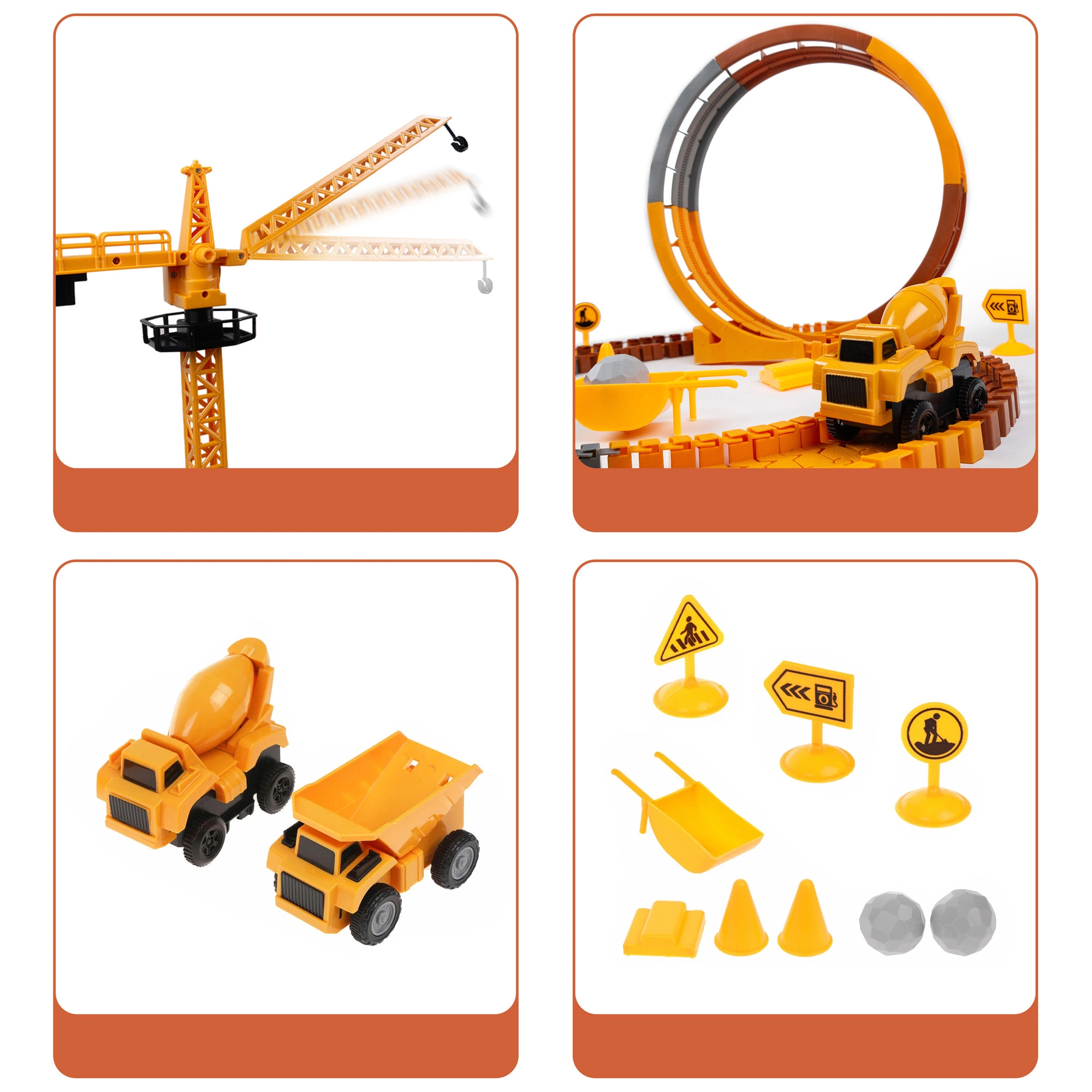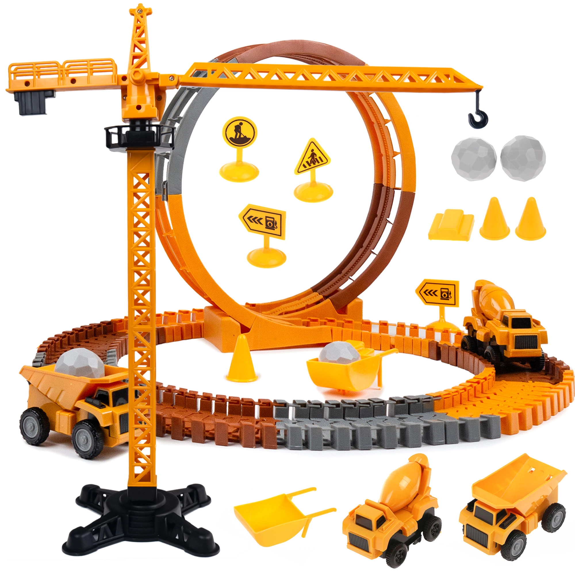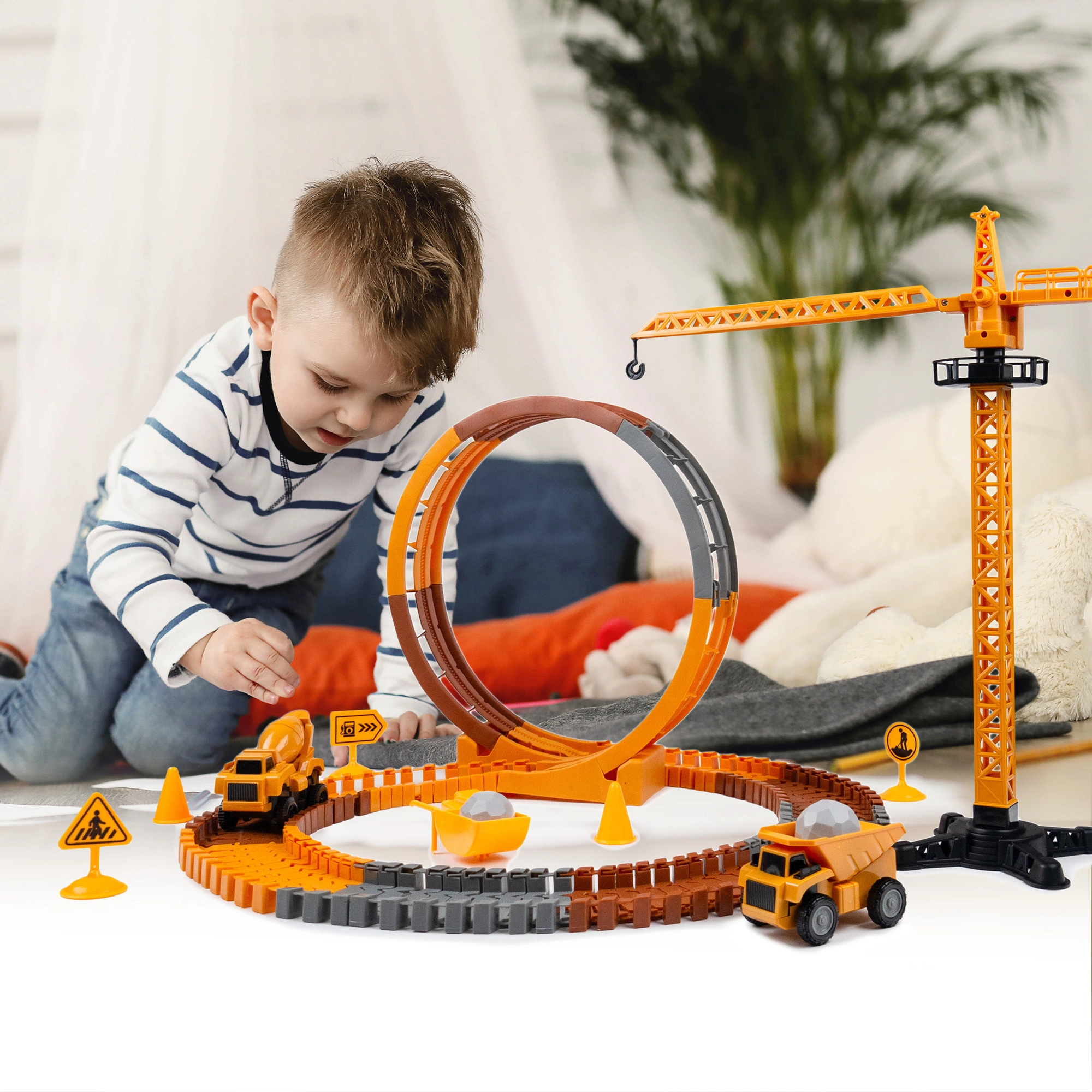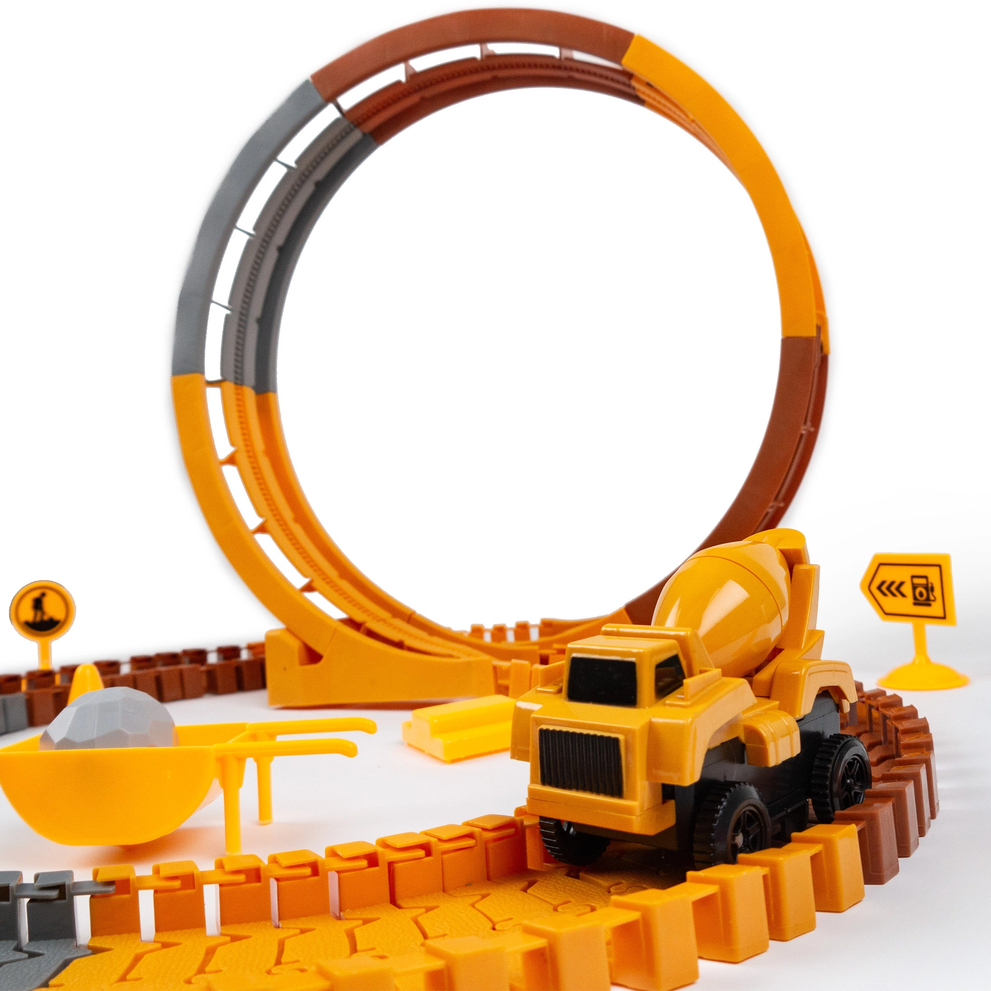 Zestaw torów wyścigowych o tematyce budowlanej zawiera 80 części, które zachęcają dzieci do konstruowania własnych przemysłowych światów. Zbuduj dźwigi, kompleksy dróg, i wiele więcej, rozwijając przy tym wyobraźnię dziecka.