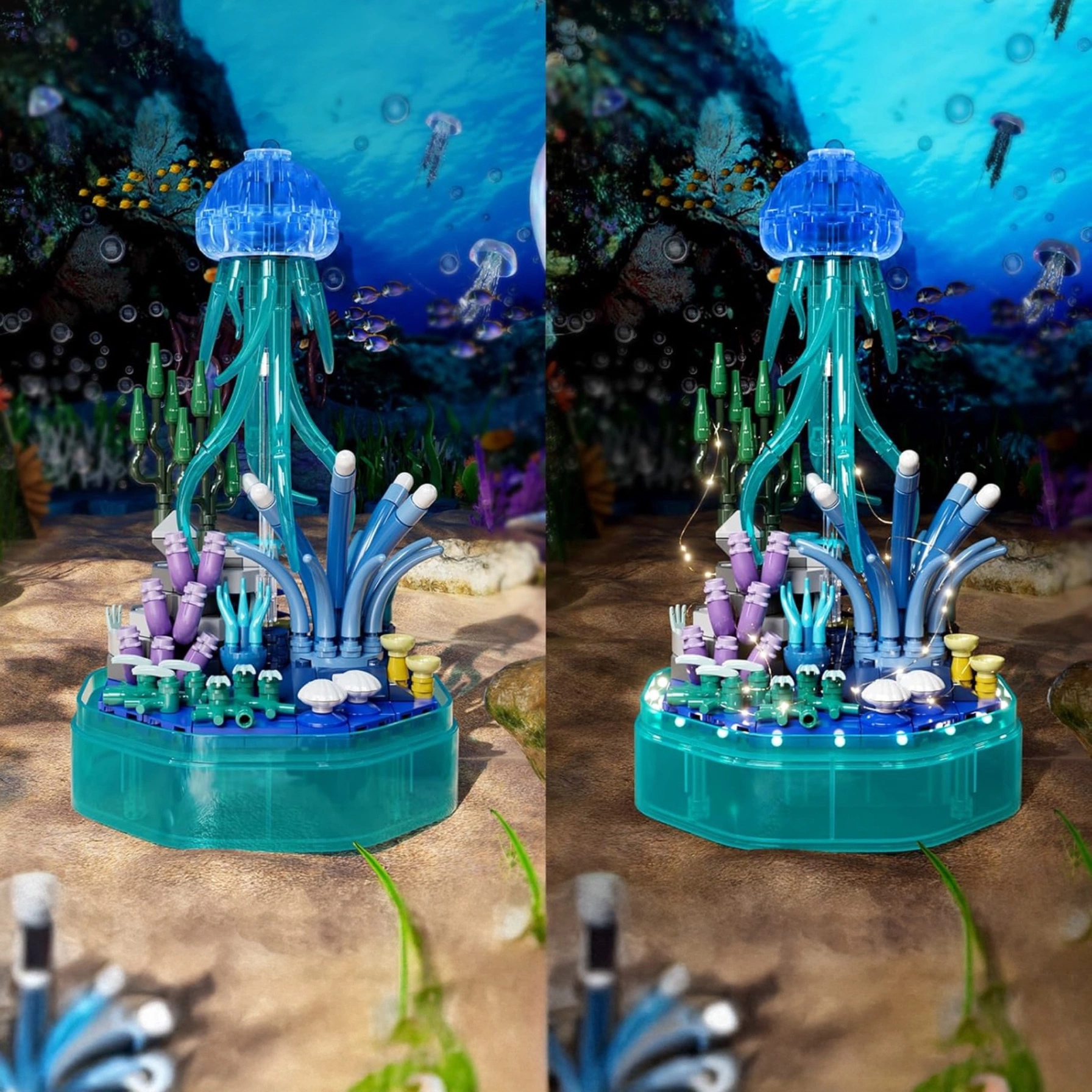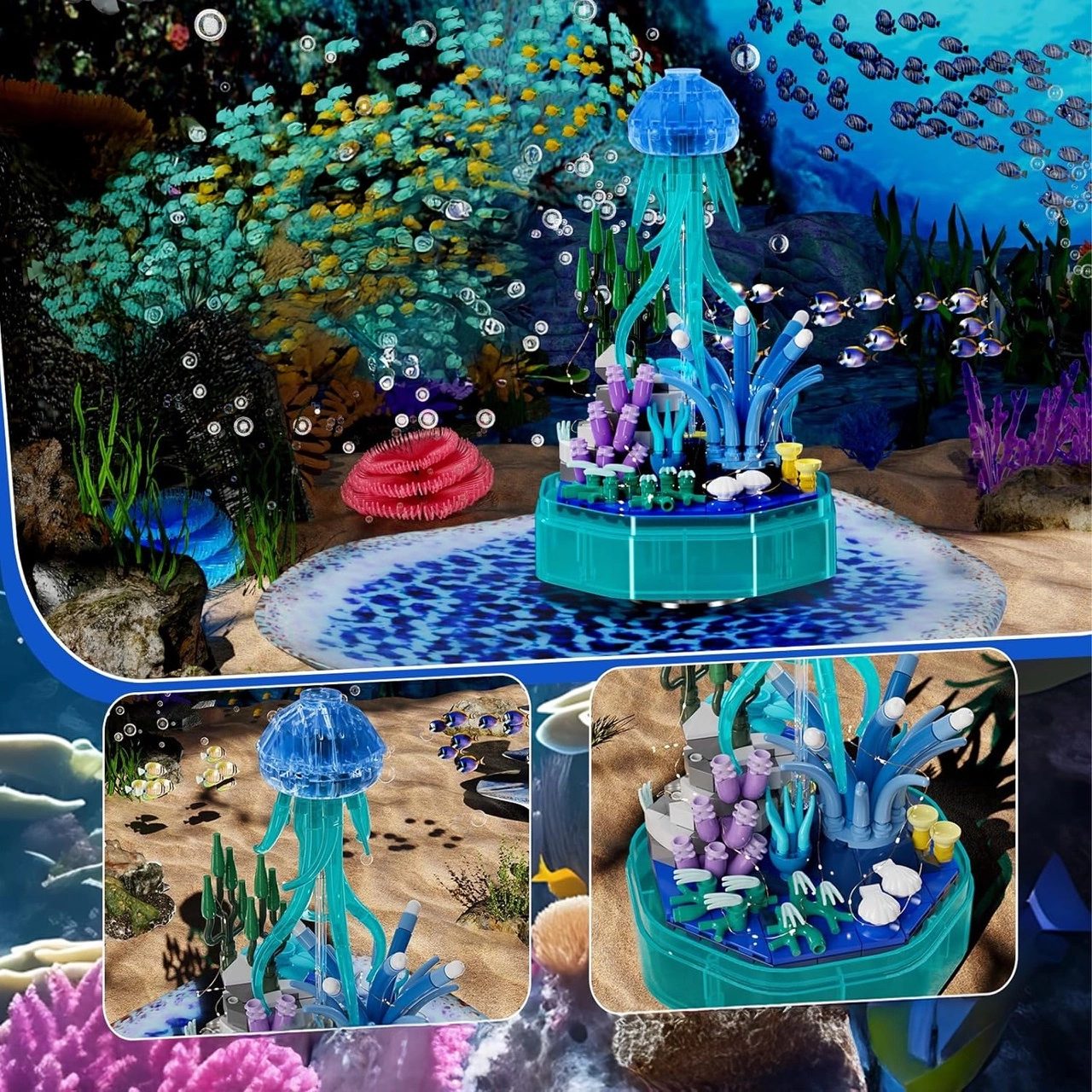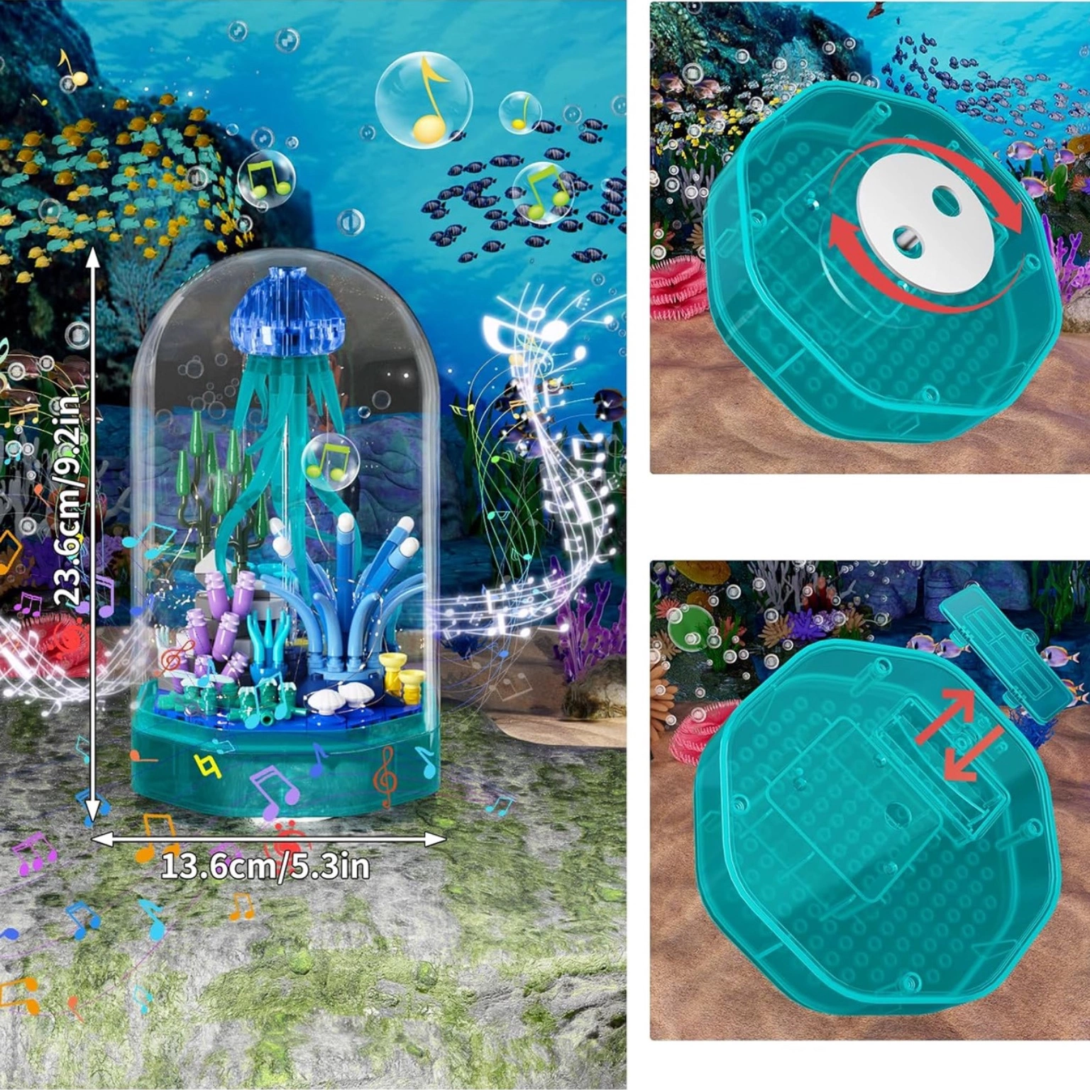 To zestaw klocków, z których zbudujesz pozytywkę z meduzą. Po złożeniu, pozytywka gra melodię i świeci, tworząc piękną podwodną scenę.
