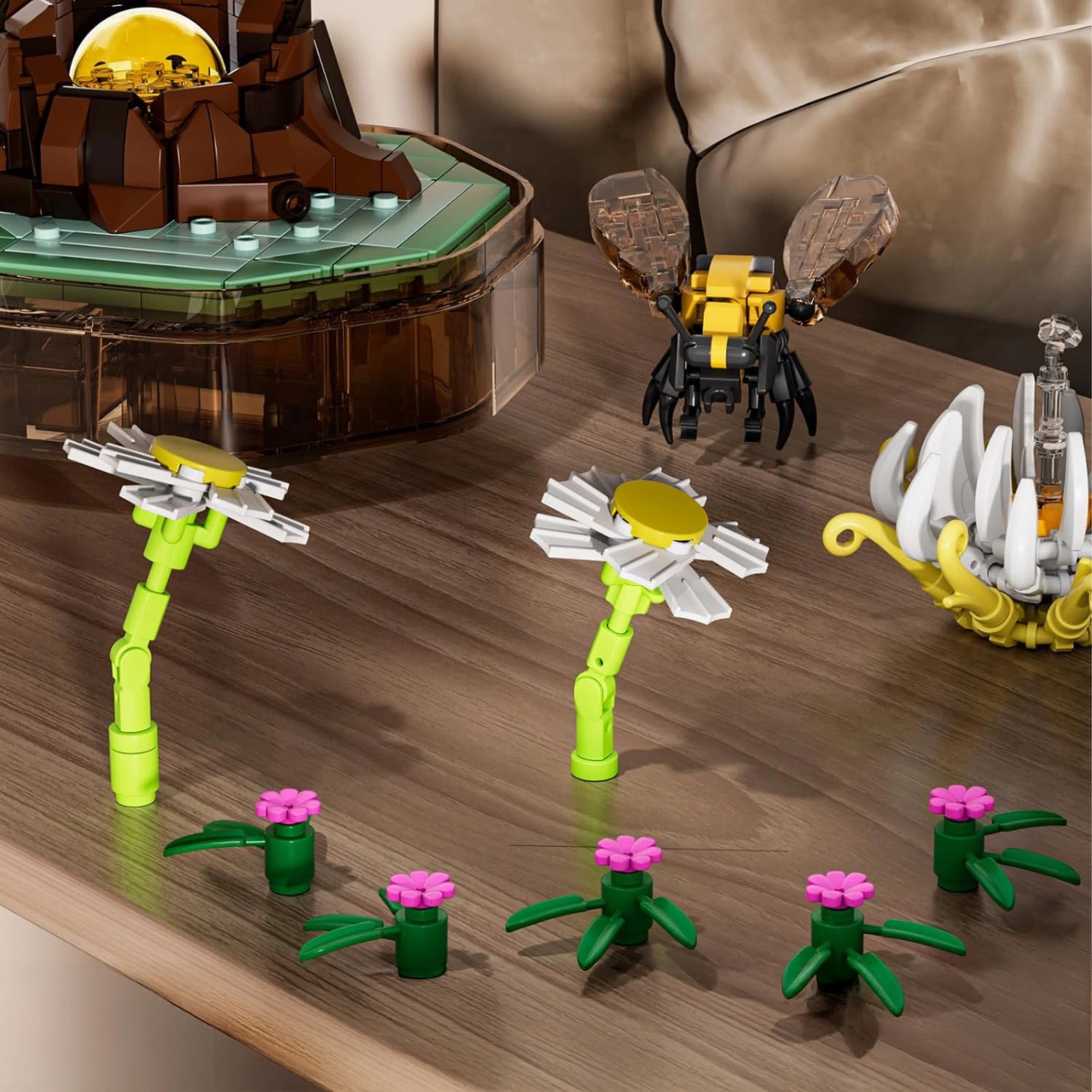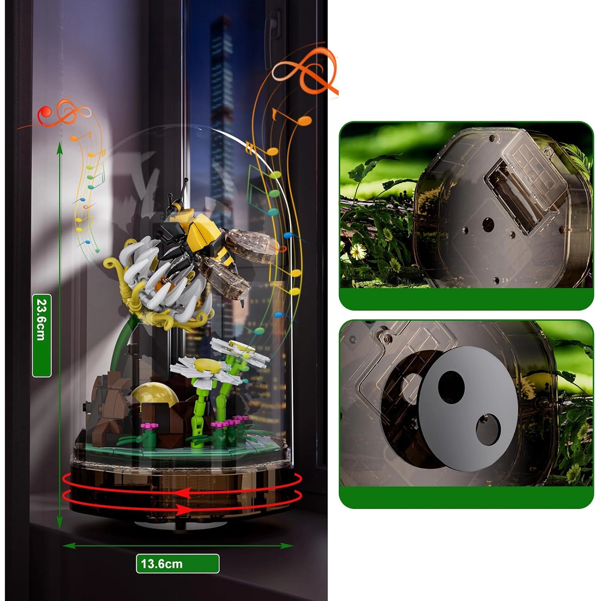 - Zbuduj świecącą pozytywkę z uroczą pszczołą unoszącą się nad kwiatkiem! Zestaw z 413 klocków gra spokojną melodię i pięknie prezentuje się pod przezroczystą kopułą. Dla dzieci od 8 lat i dorosłych miłośników natury i kreatywnych dekoracji.