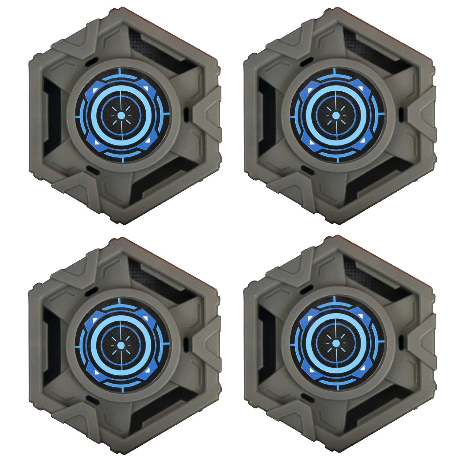 Dodatkowo w zestawie zawarte są plastikowe tarcze z celownikiem do zbijania podczas zabaw.