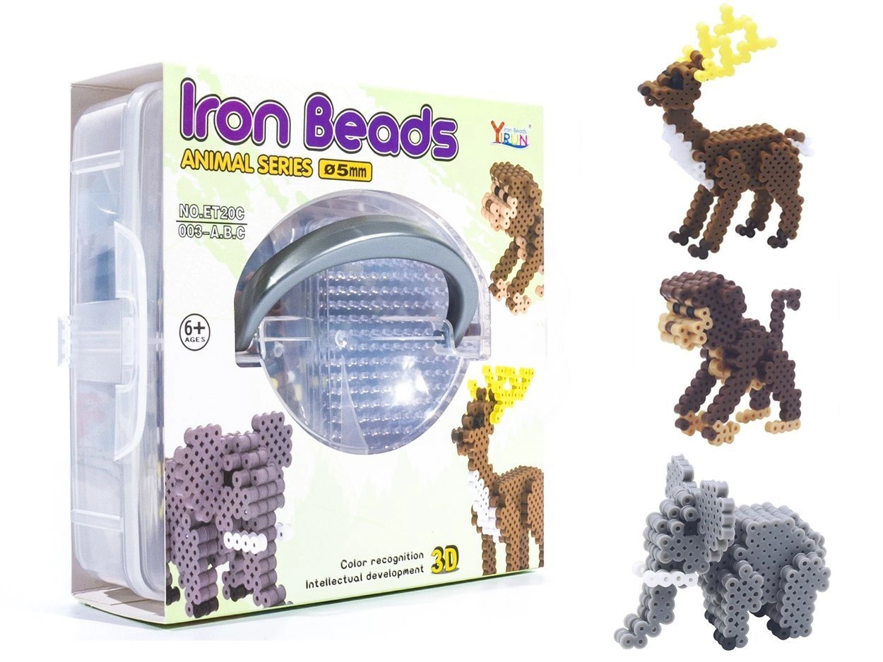 - Zestaw koralików do prasowania, zawiera wzory do zbudowania 3 zwierzątek: Małpki, Słonika oraz Renifera. Zabawka kreatywna przeznaczona dla dzieci od lat 6.