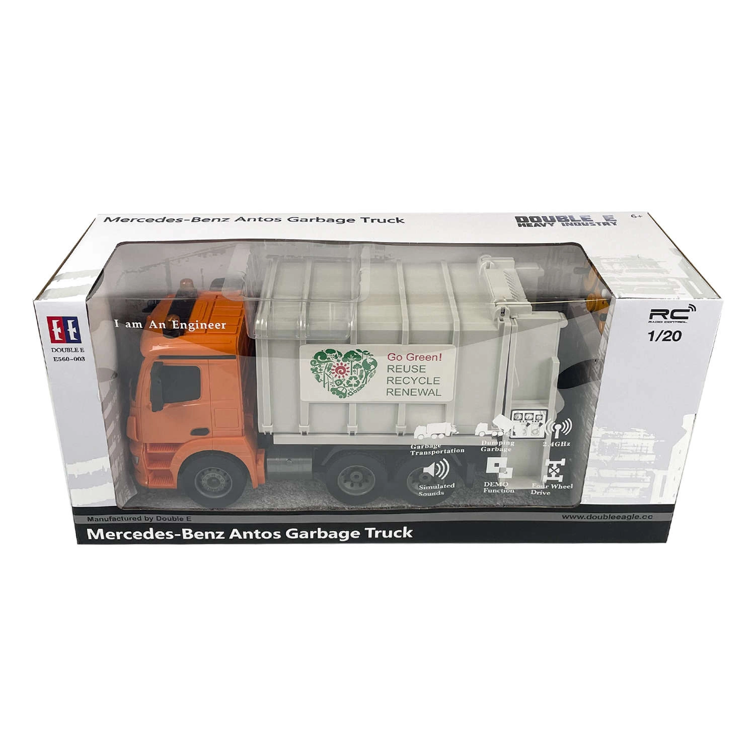 Seria Mercedes-Benz Antos Śmieciarka zdalnie sterowana to idealny prezent dla małego pasjonata aut budowlanych, dzięki temu modelowi dziecko ma możliwość poszerzyć swoją kolekcje pojazdów niezbędnych do prawidłowego działania miasta. Jej szczegółowy wygląd umożliwia dziecku zapoznanie się z inżynierią pojazdu, wycieraczki przedniej szyby, lusterka wsteczne, rura odpowietrzająca, zbiornik paliwa, kosz na śmieci, dźwięki i światła itp. Wszystko co posiada prawdziwa śmieciarka.
