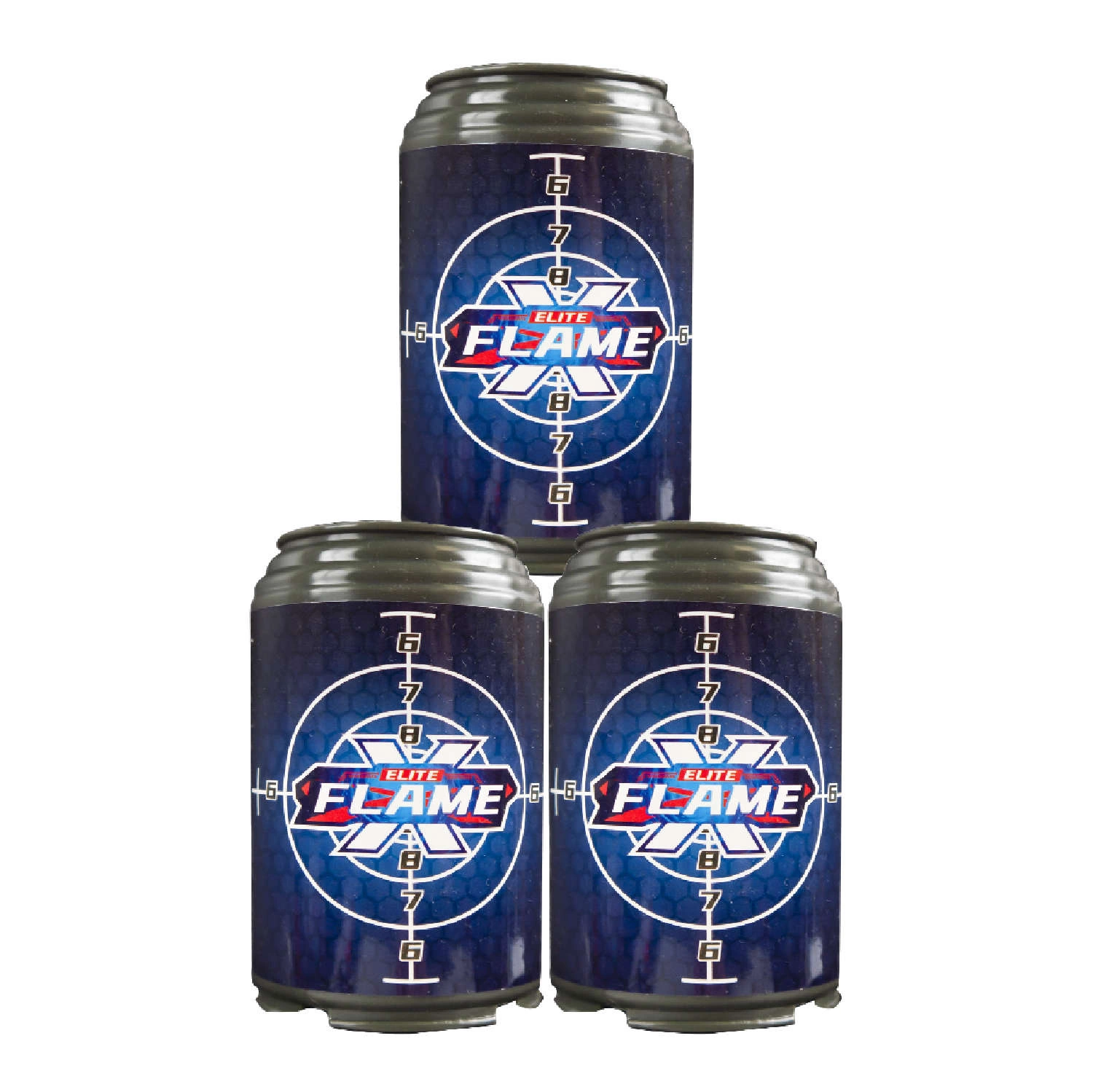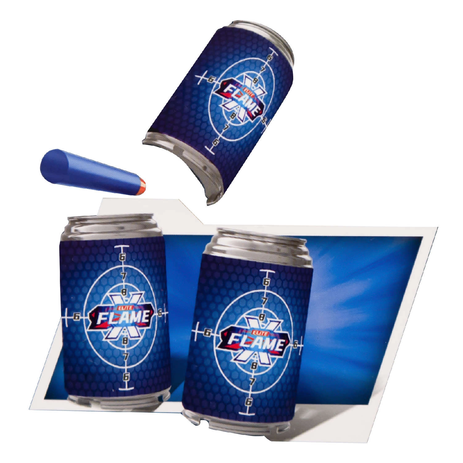 Dodatkowo w zestawie zawarte są plastikowe puszki + tarcze z celownikiem do zbijania podczas zabaw.