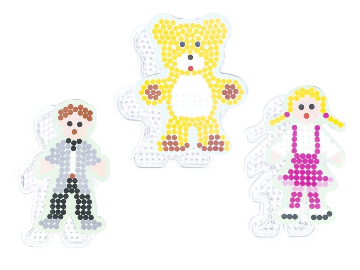 • Przeźroczyste podkładki do ułożenia dziewczynki, chłopca i misia z koralików do prasowania Pyssla, Hama (midi), La Manuli, Ses, Bastelbär oraz innych o średnicy 5mm.