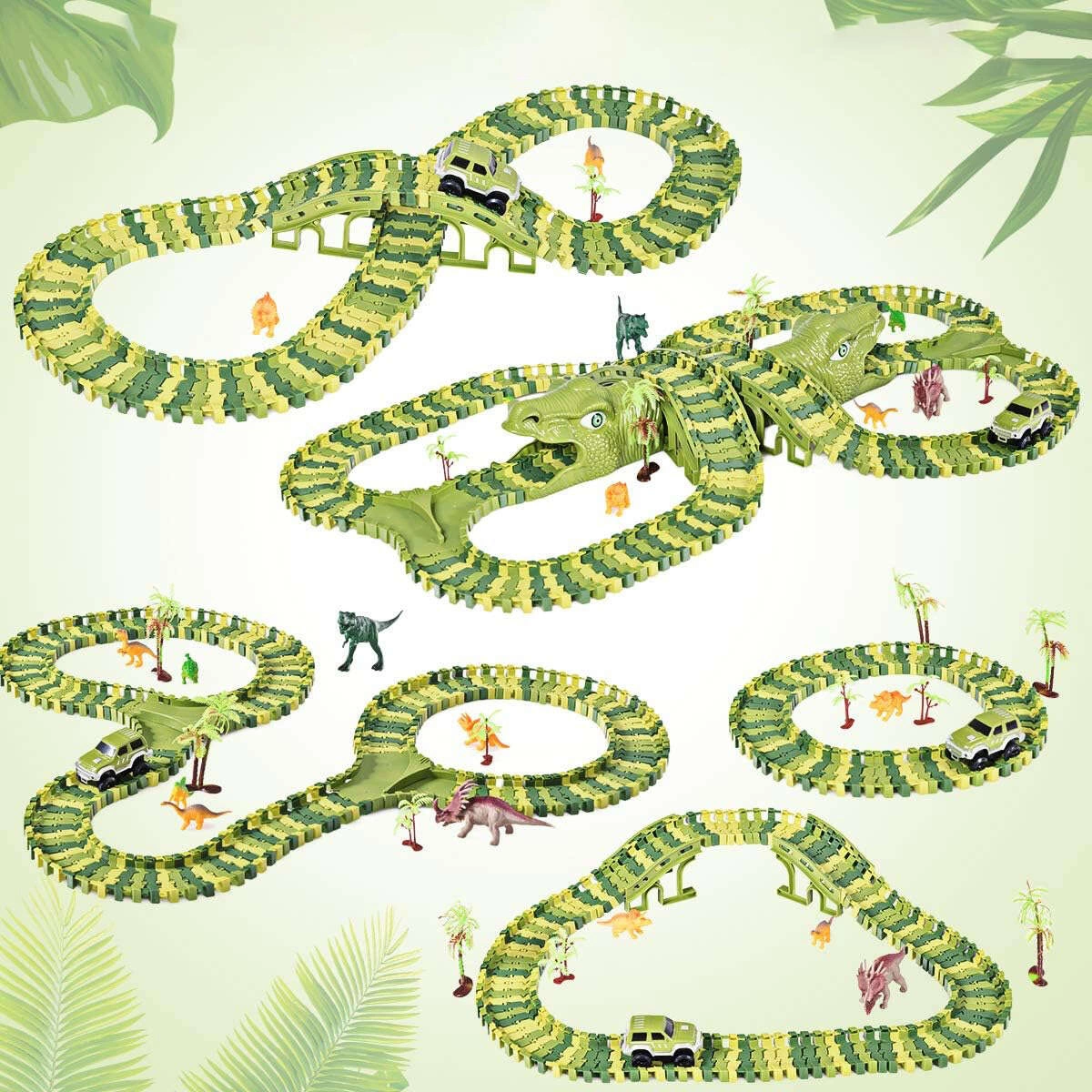 Tor Wyścigowy Mega City Dino Park Zestaw z Autkiem i Tory Dinozaurów T Rex 240 Elementów