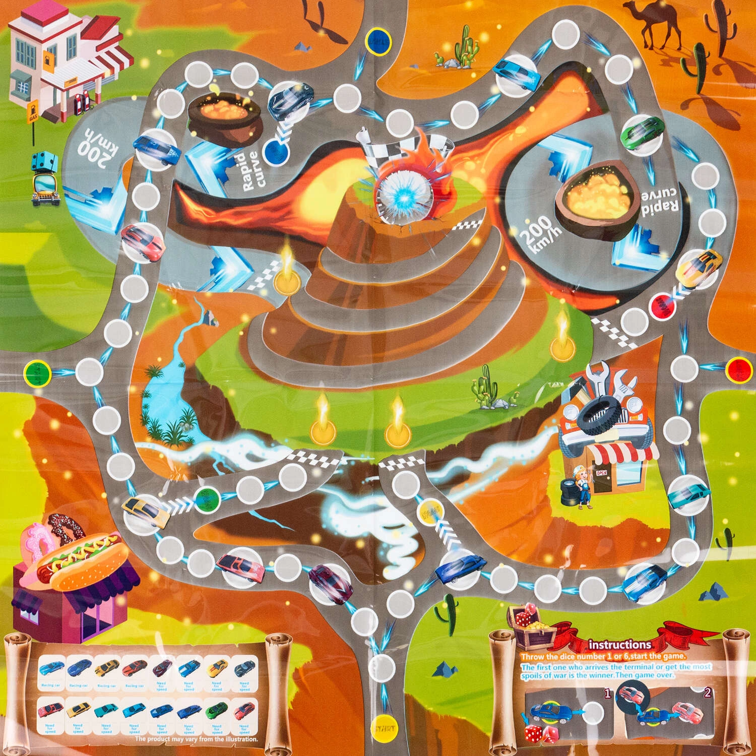 Dzięki dołączonej do zestawu maty nasza pociecha może wraz ze znajomymi i rodziną zagrać w planszową grę. Zasada jest prosta, kto pierwszy przetnie linie mety wygrywa!