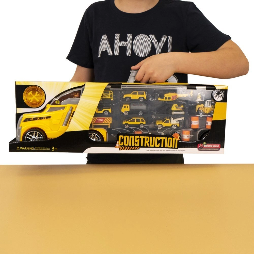 Zestaw składa się z ciężarówki, 8 resoraków razem z planszą do zabawy i dodatkowych akcesoriów oraz doczepianej lawety w kształcie walizki, którą wygodnie można transportować wraz z zawartością.