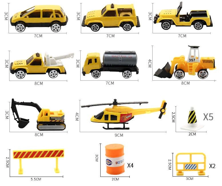 Do zestawu dołączonych jest 8 budowlanych pojazdów, które przygotowane są do akcji w każdej chwili.