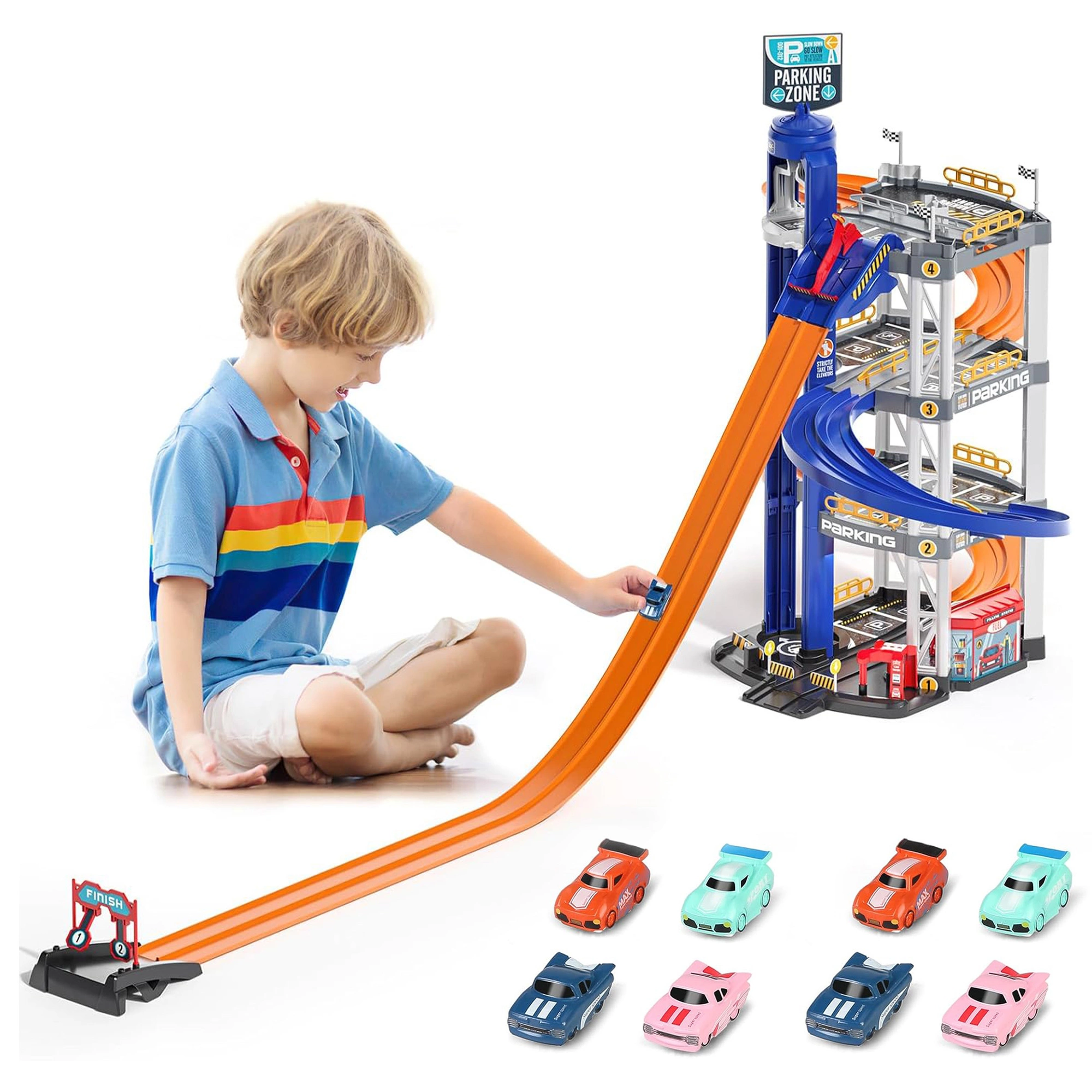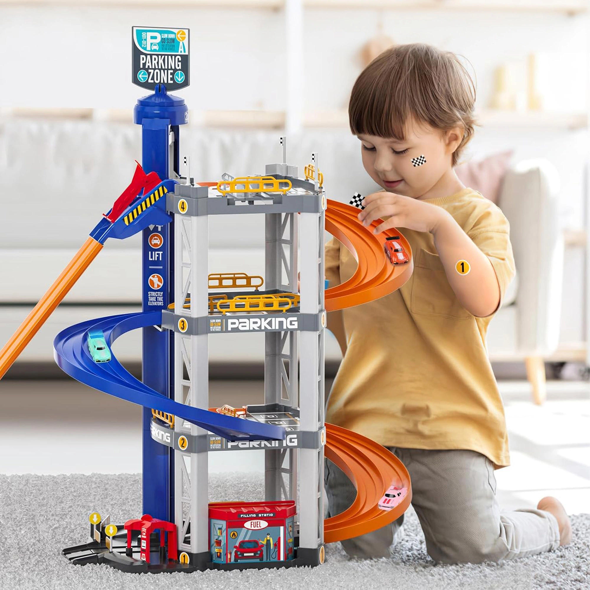 Zestaw garażowy dla dzieci z 4 poziomami to świetny prezent dla chłopców w wieku od 3 do 8 lat.