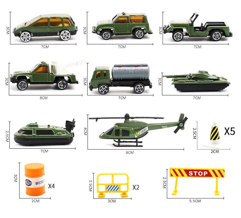 Do zestawu dołączonych jest 8 militarnych pojazdów, które przygotowane są do akcji w każdej chwili.