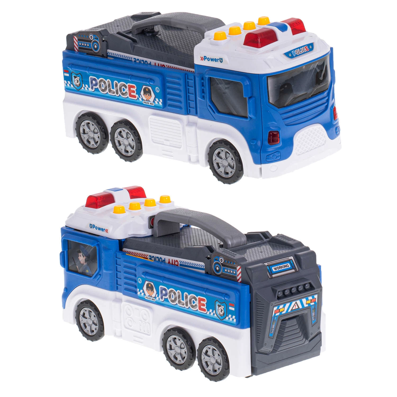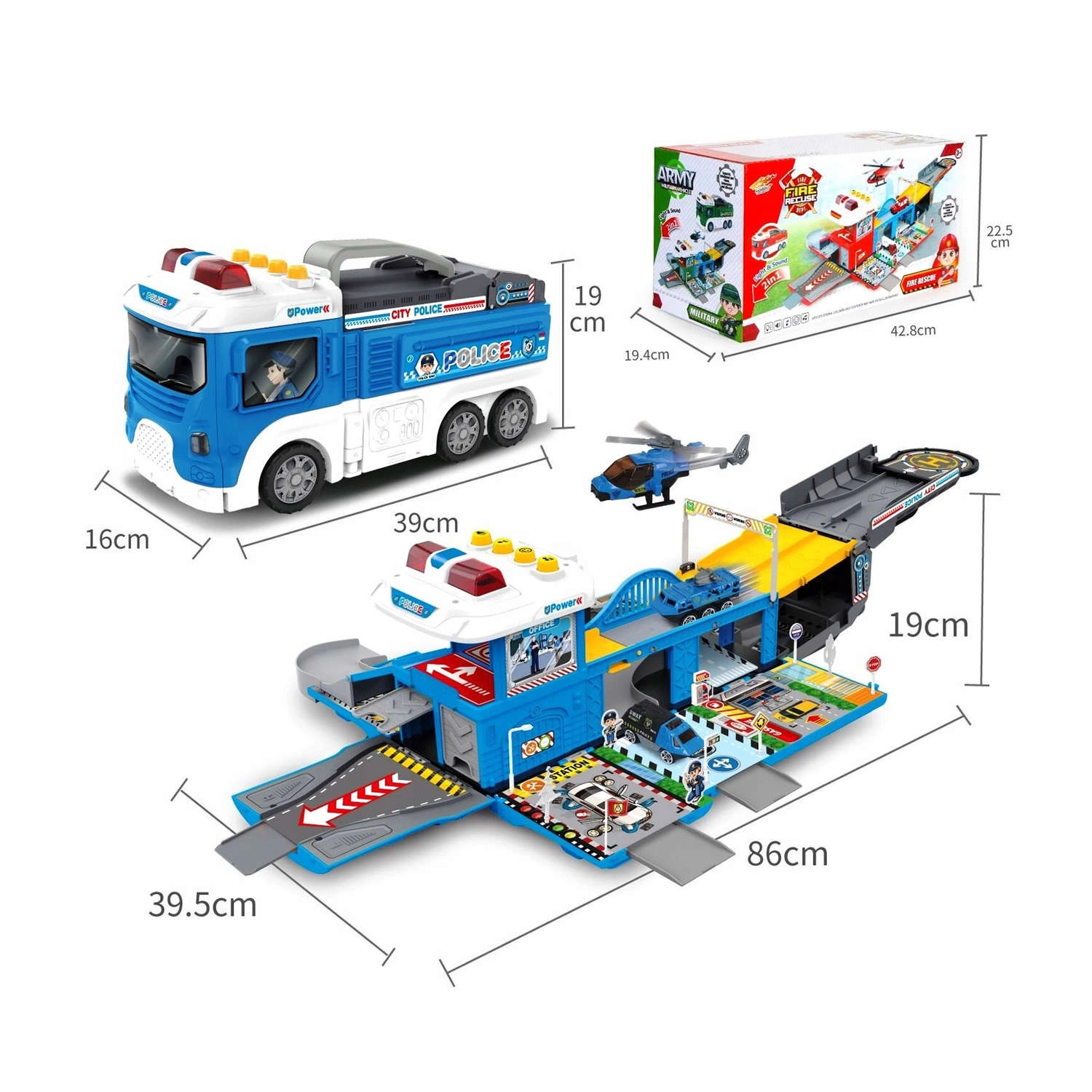 - Pełen frajdy: Szukasz naprawdę ładnego składanego wozu policyjnego, którym Twój mały chłopiec może bawić się małymi samochodami? Zabawkowy wóz policyjny przekształca się w remizę policyjną z podwójną zjeżdżalnią do zabawy małymi samochodami.