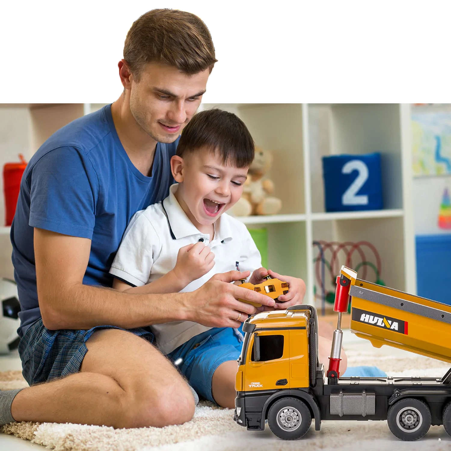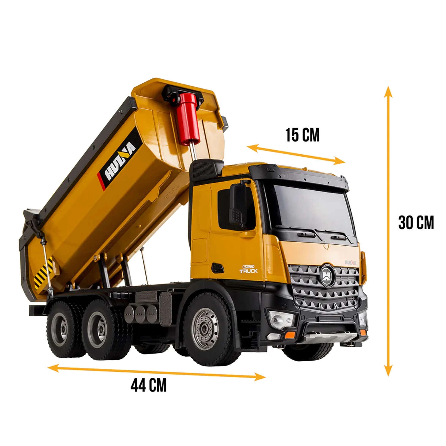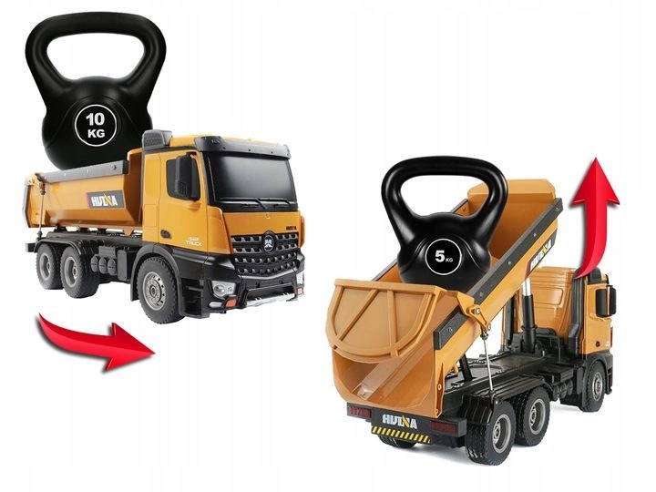 - Zdalnie sterowany model wywrotki, która przewiezie ciężkie ładunki. Wykonany jest głównie z elementów metalowych niczym prawdziwa wywrotka. Zasiądź za sterami maszyny i pozwól się przenieść do świata inżynierii. Zestaw idealnie nadaje się jako prezent.