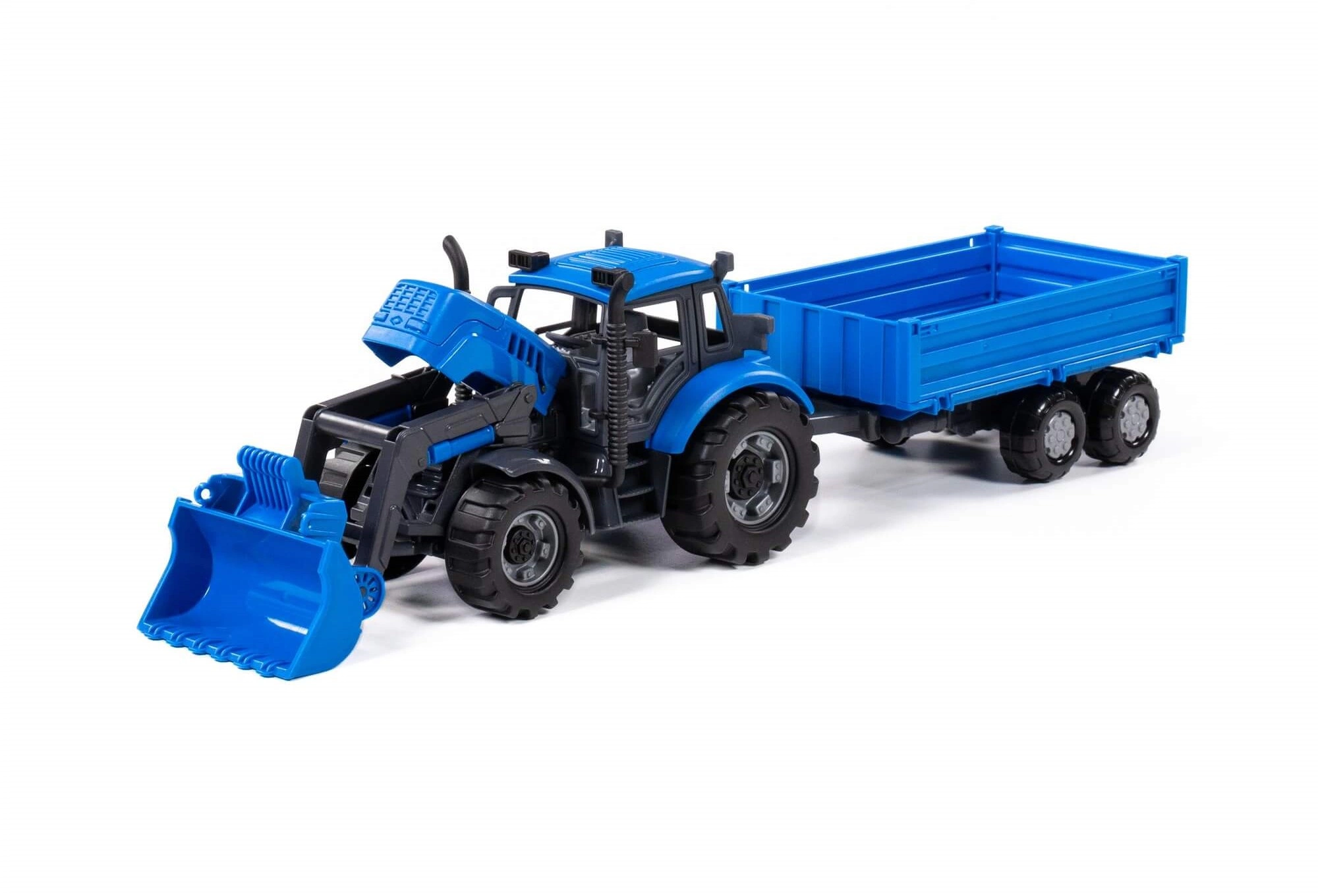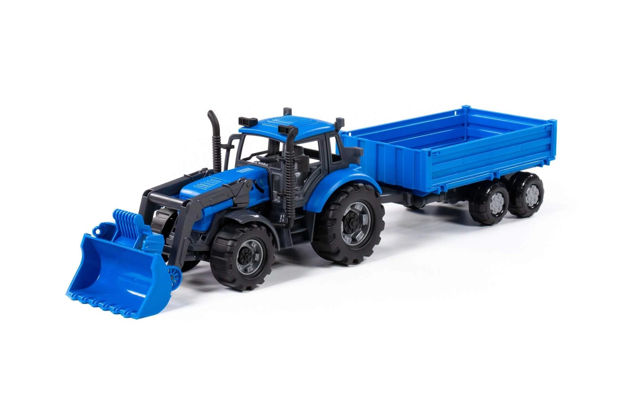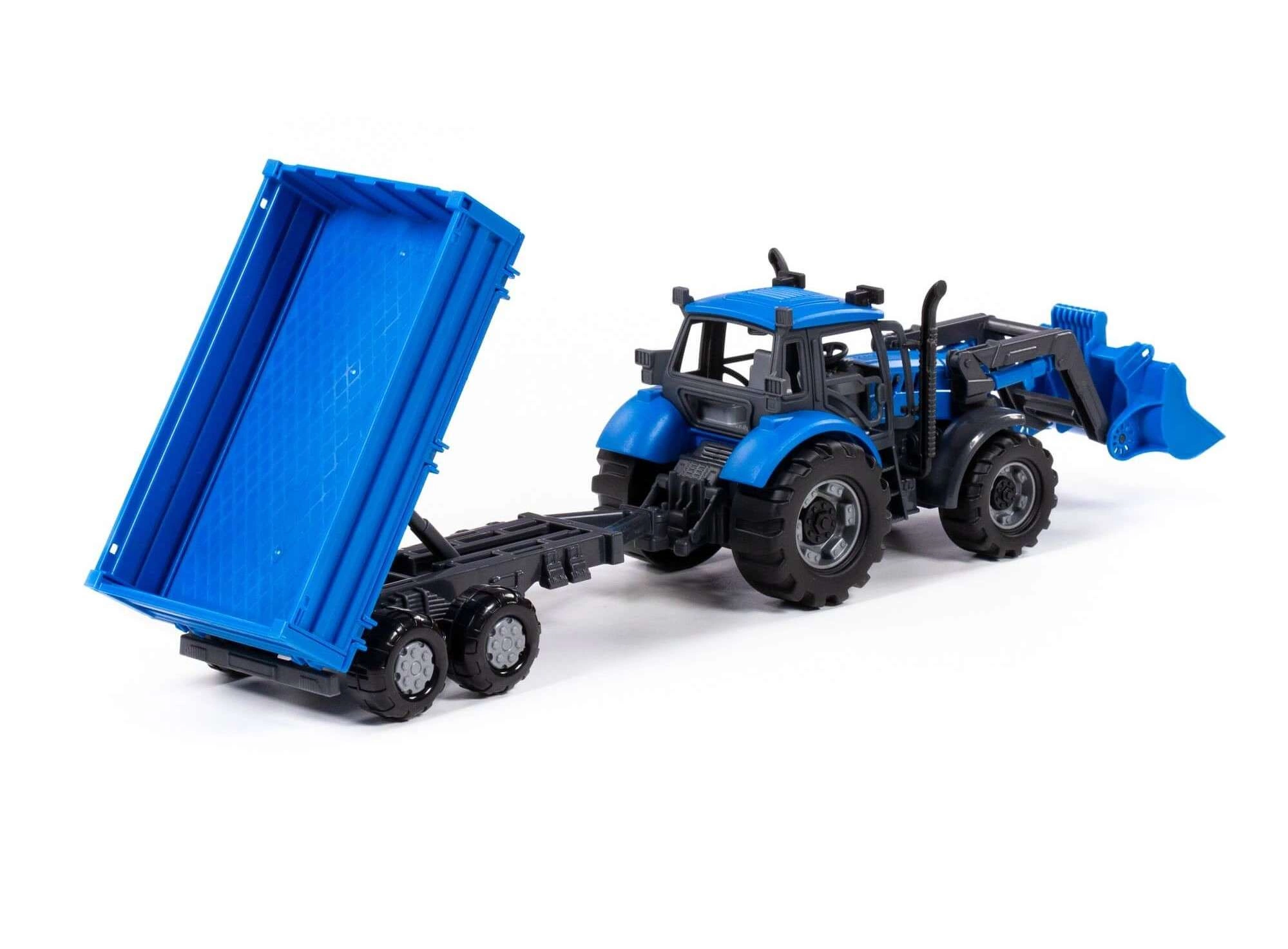Zabawka Traktor dla Dzieci Niebieski z Przyczepą Burtową Maszyna Rolnicza