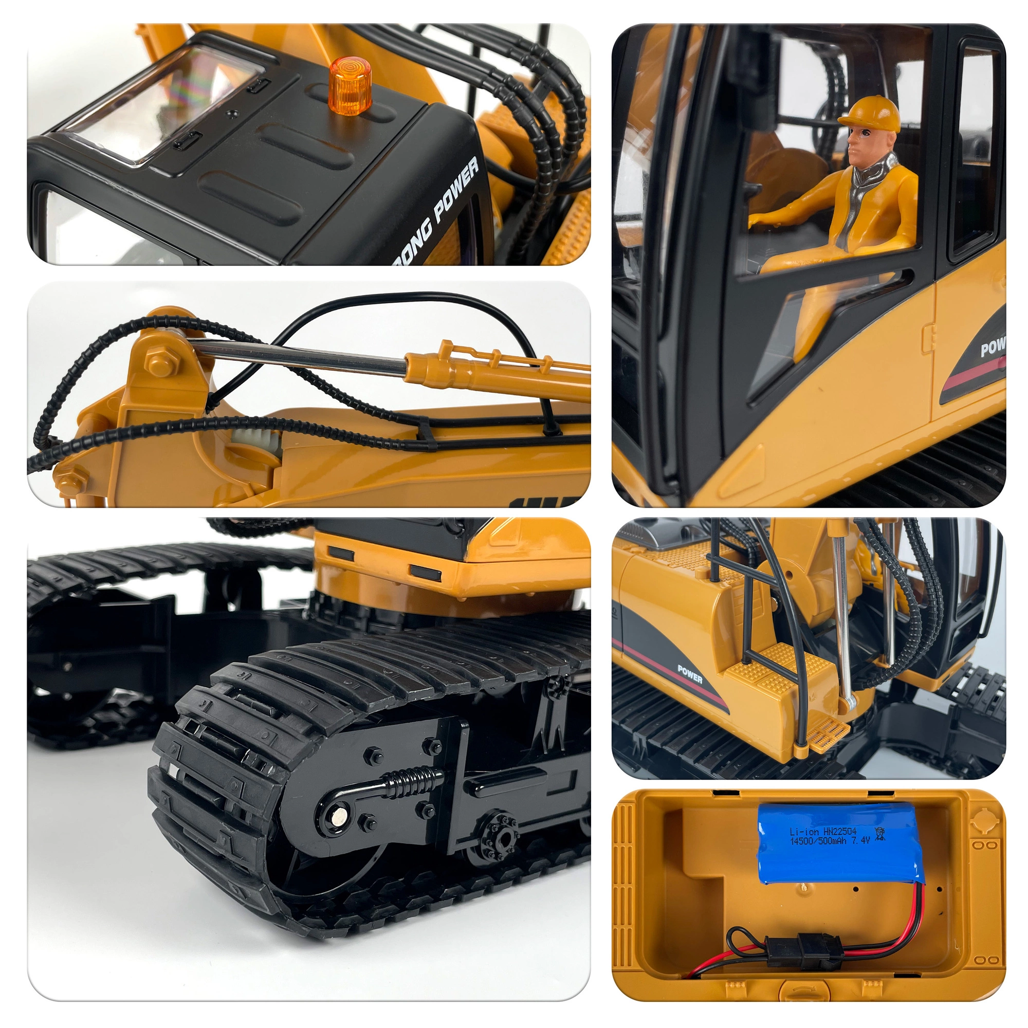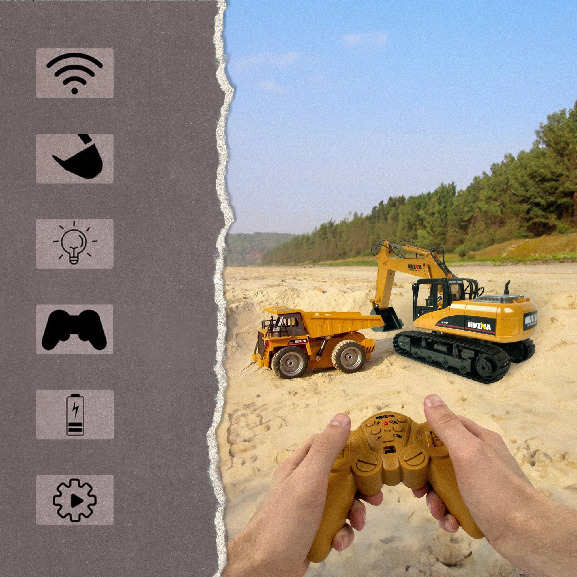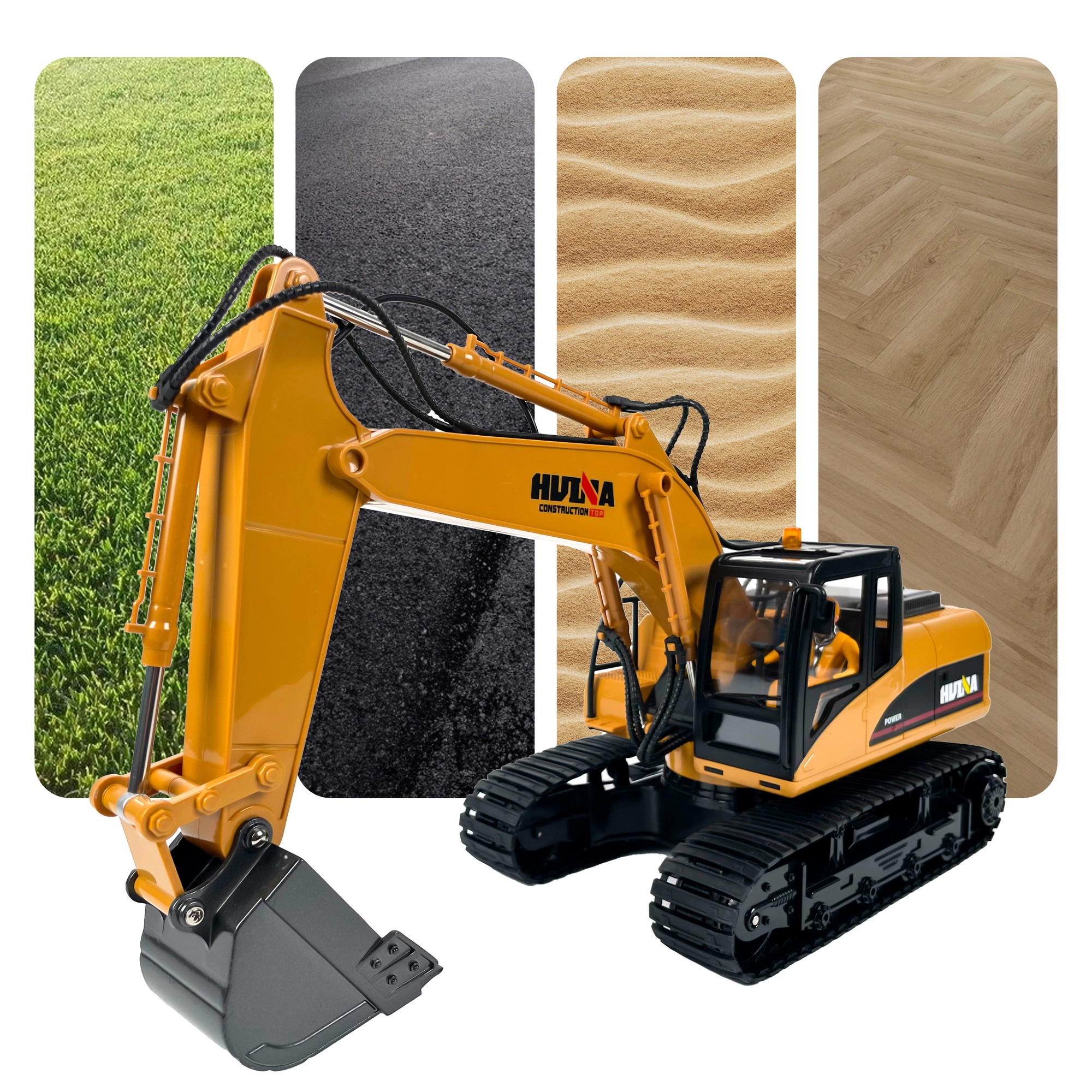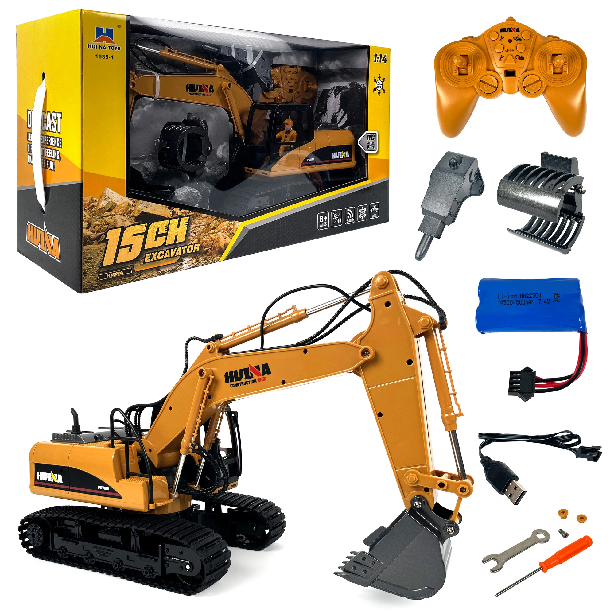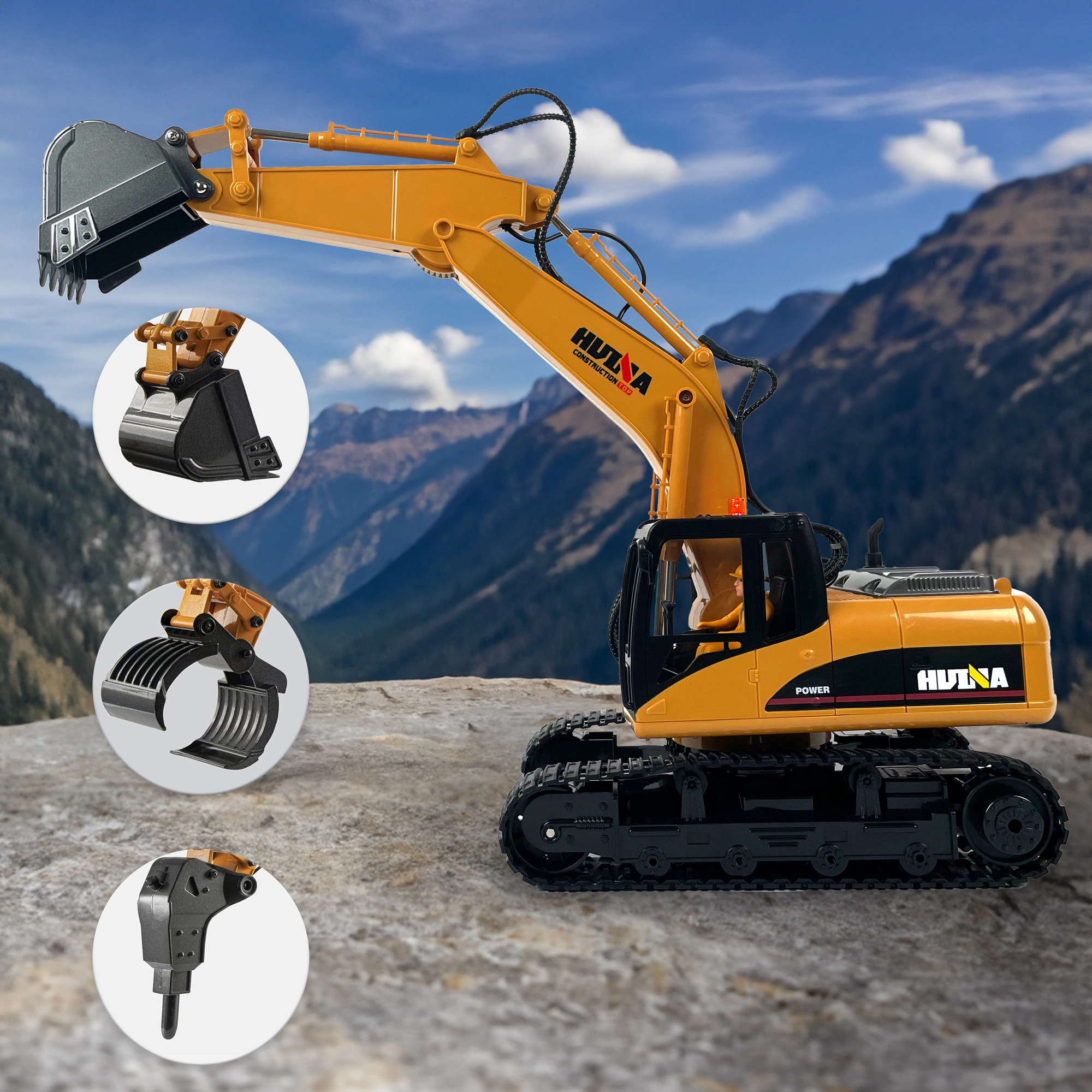 - Zdalnie sterowana koparka Huina 1535-1 – Model w skali 1:14, z wymiennymi narzędziami i realistycznym wyglądem.