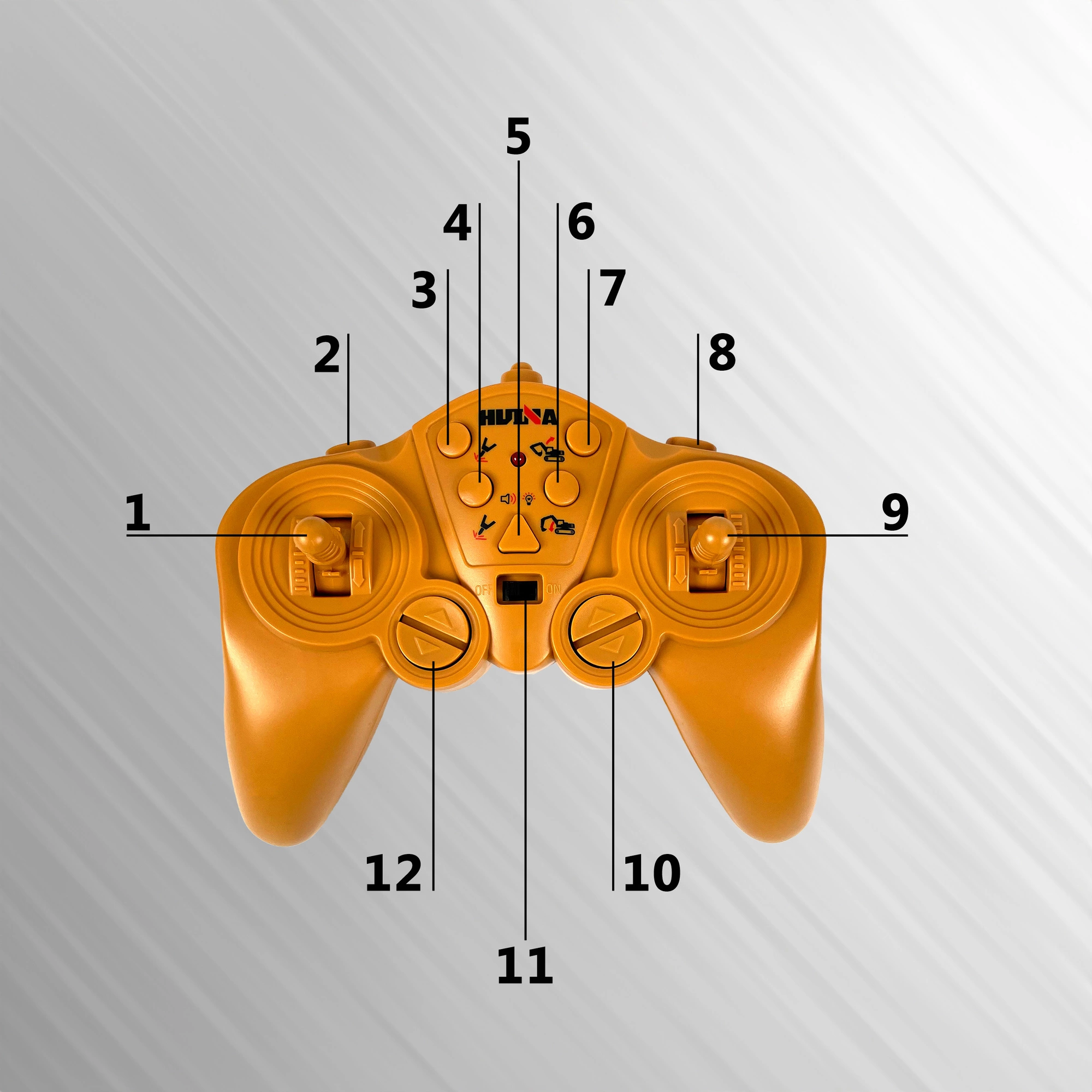 - Zdalnie sterowana koparka Huina 1535-1 w skali 1:14 z 15 kanałami, trzema wymiennymi narzędziami, metalową łyżką i gumowymi gąsienicami. Realistyczne efekty świetlne i dźwiękowe. Dla dzieci od 8 lat i dorosłych miłośników maszyn budowlanych.